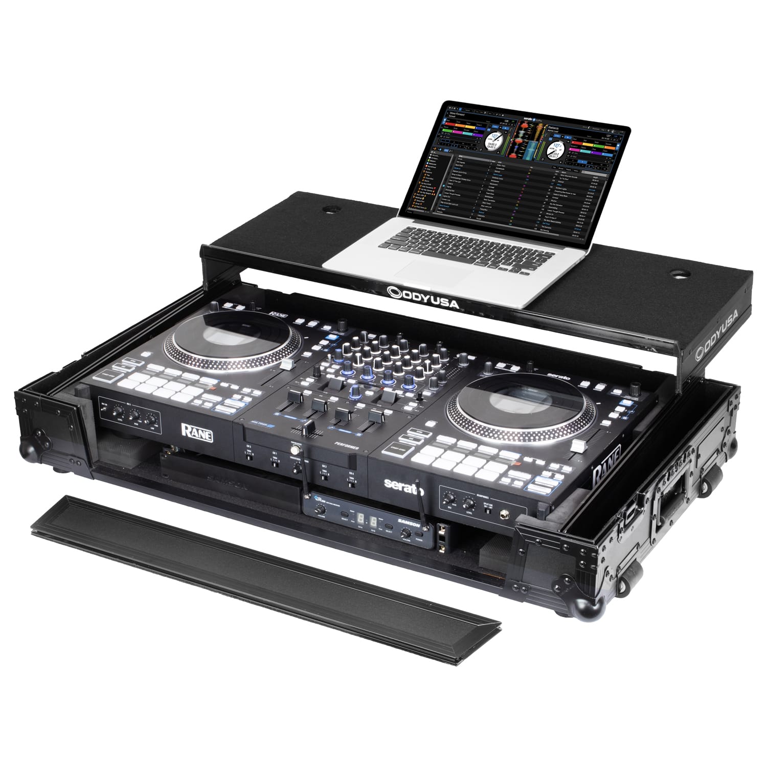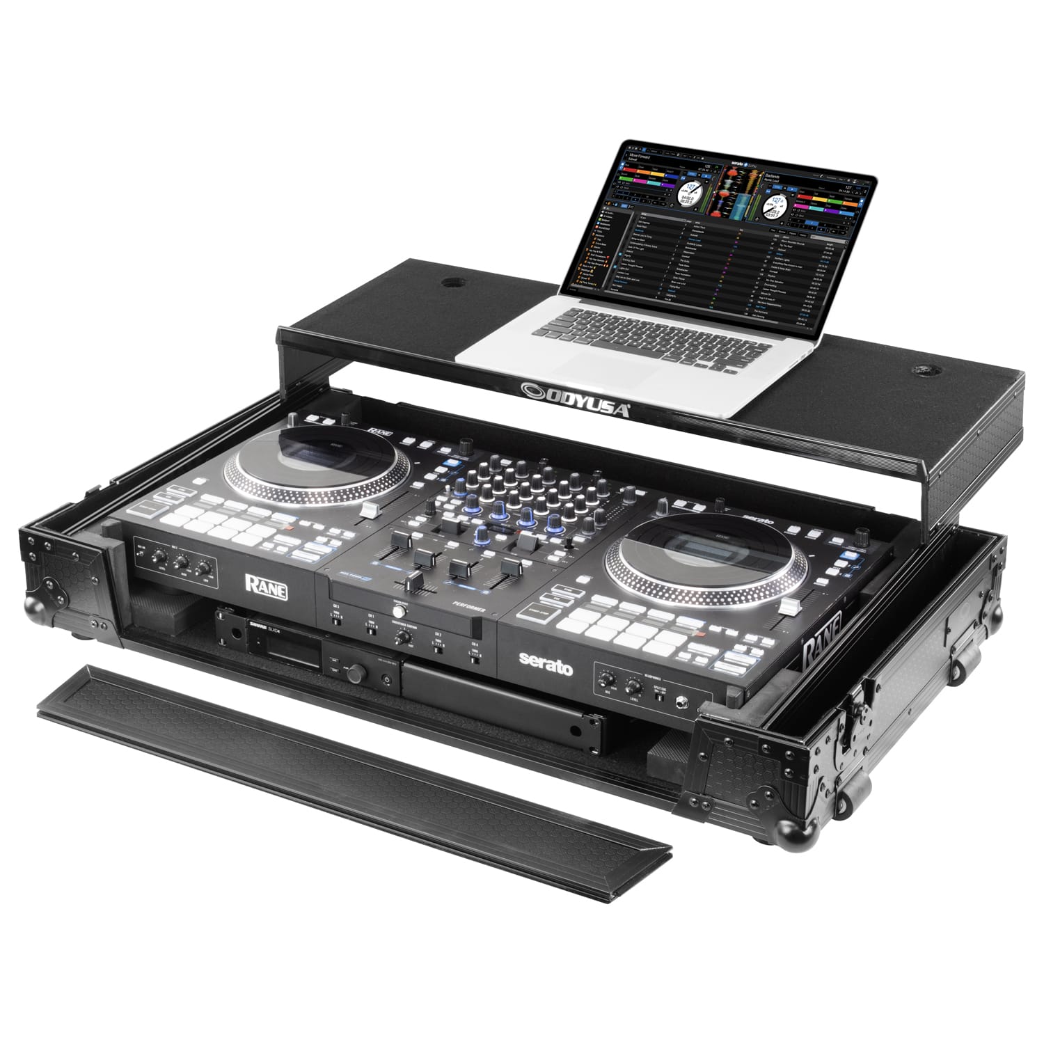 RANE PERFORMER Black Label 1U Case with Glide Style Laptop Platform and Wheels