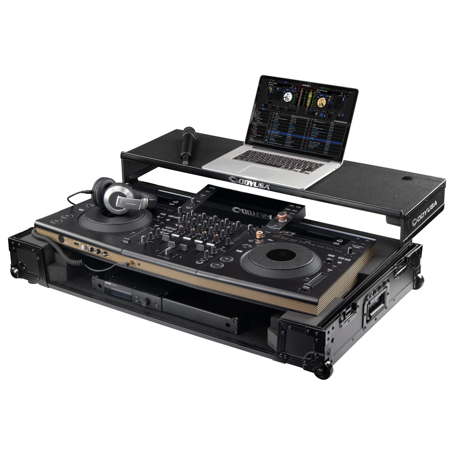 Odyssey Black Label DDJ-REV5 1U Flight Case with Glide Style Laptop Platform and Corner Wheels