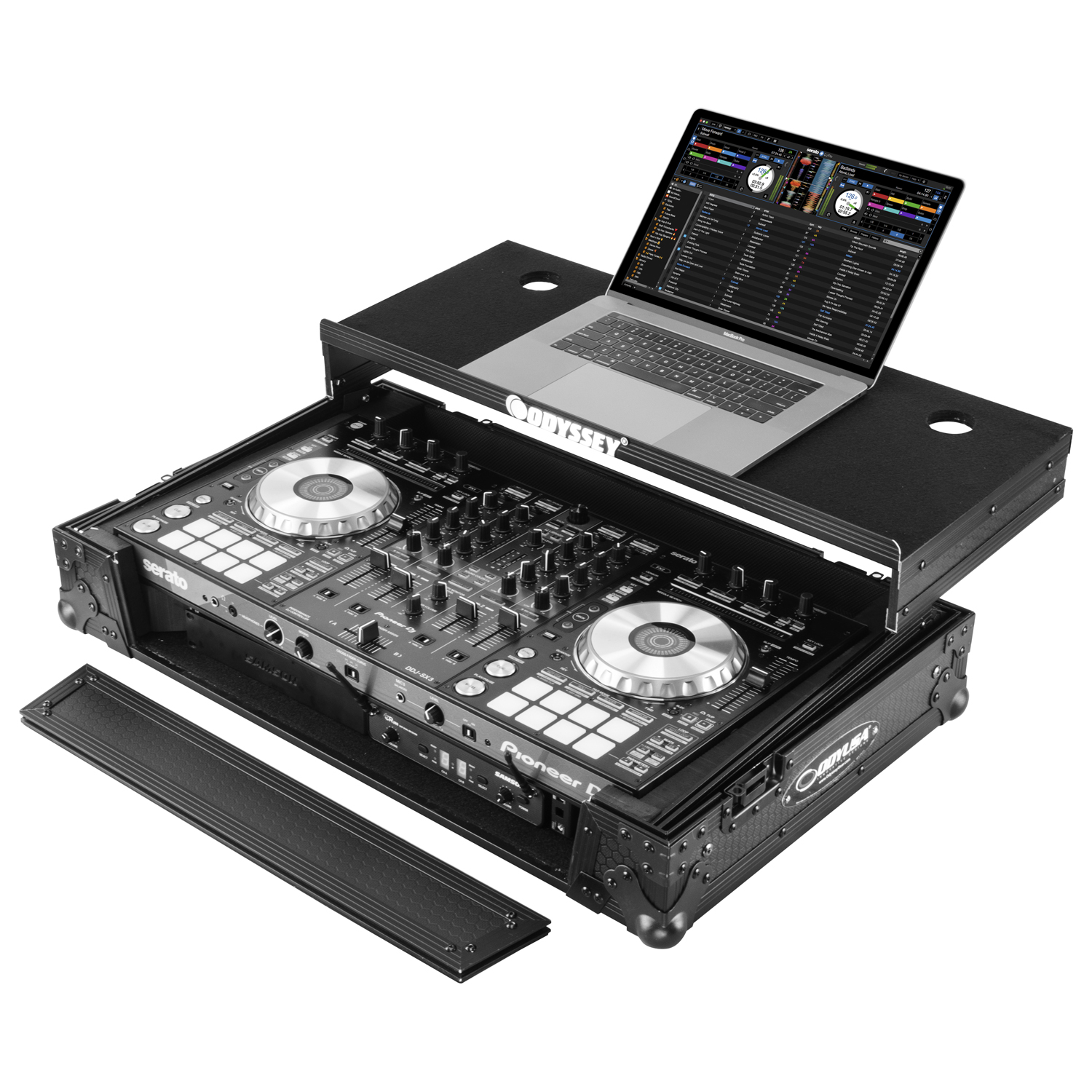 Disclaimer: Odyssey Innovative Designs strives to ensure the accuracy of the information contained herein. However, due to the constant changes in raw material availability and usage, improvements in design, typographical errors, and other factors that may be beyond our control, We reserve the right to make changes in designs, styles, features, colors, dimensions, and other specifications without prior notice. Gear (for examples, laptops, DJ controllers, turntables, mixers, microphones, headphones, needles, cartridges, mats, and others) shown in product images are not included. Certain areas of the product images may not be shown in scale due to the nature of the photography. Copyrighted logos and trademarks are those of the respective company: Akai, Alesis, Allen & Heath, American Audio, Apple, Avertec, B-52, BBE, Behringer, Boss, Cascio, Chauvet, Coemar, Cortex, Crown, Dell, Denon, Digidesign, Drawmer, Elation, Fender, Gemini, Gemsound, Hercules, Korg, M-Audio, Mackie, Marshall, Martin, Mesa, Multi-Cart, Numark, Ortofon, Pearl River, Peavey, Pioneer, Rane, Robe, Roland, Serato, Shure, Sony, Soundcraft, Tascam, Technics, Traktor Scratch, Vestax, Vox, Yamaha, etc. Equipment pictured not included.