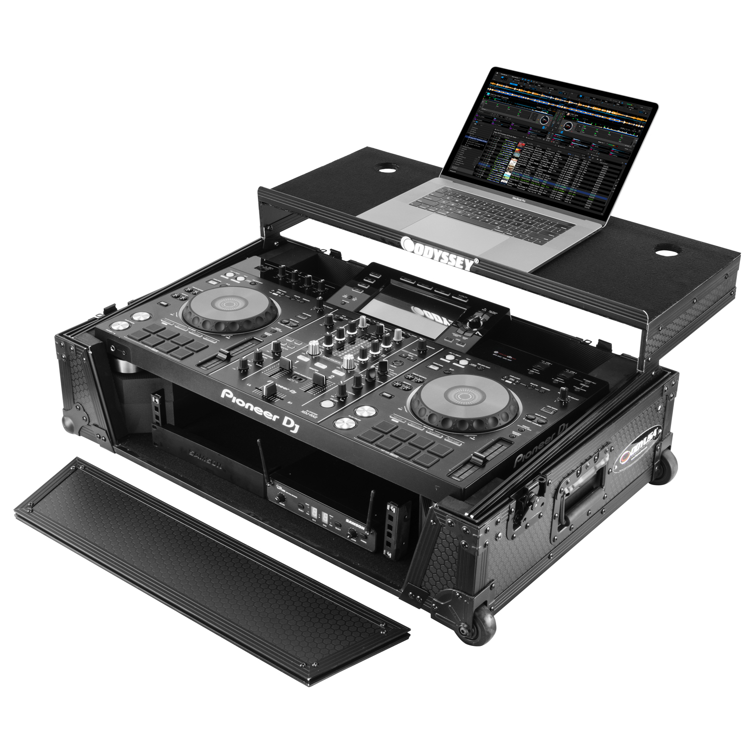 Disclaimer: Odyssey Innovative Designs strives to ensure the accuracy of the information contained herein. However, due to the constant changes in raw material availability and usage, improvements in design, typographical errors, and other factors that may be beyond our control, We reserve the right to make changes in designs, styles, features, colors, dimensions, and other specifications without prior notice. Gear (for examples, laptops, DJ controllers, turntables, mixers, microphones, headphones, needles, cartridges, mats, and others) shown in product images are not included. Certain areas of the product images may not be shown in scale due to the nature of the photography. Copyrighted logos and trademarks are those of the respective company: Akai, Alesis, Allen & Heath, American Audio, Apple, Avertec, B-52, BBE, Behringer, Boss, Cascio, Chauvet, Coemar, Cortex, Crown, Dell, Denon, Digidesign, Drawmer, Elation, Fender, Gemini, Gemsound, Hercules, Korg, M-Audio, Mackie, Marshall, Martin, Mesa, Multi-Cart, Numark, Ortofon, Pearl River, Peavey, Pioneer, Rane, Robe, Roland, Serato, Shure, Sony, Soundcraft, Tascam, Technics, Traktor Scratch, Vestax, Vox, Yamaha, etc. Equipment pictured not included.