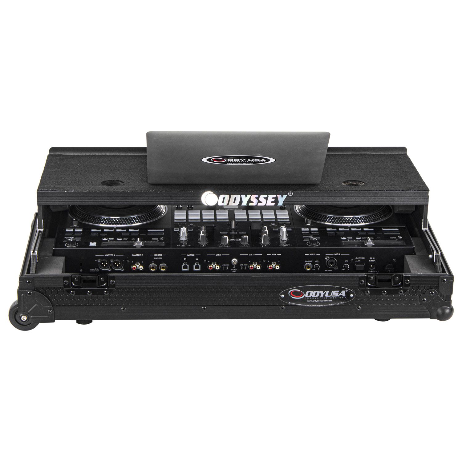 Disclaimer: Odyssey Innovative Designs strives to ensure the accuracy of the information contained herein. However, due to the constant changes in raw material availability and usage, improvements in design, typographical errors, and other factors that may be beyond our control, We reserve the right to make changes in designs, styles, features, colors, dimensions, and other specifications without prior notice. Gear (for examples, laptops, DJ controllers, turntables, mixers, microphones, headphones, needles, cartridges, mats, and others) shown in product images are not included. Certain areas of the product images may not be shown in scale due to the nature of the photography. Copyrighted logos and trademarks are those of the respective company: Akai, Alesis, Allen & Heath, American Audio, Apple, Avertec, B-52, BBE, Behringer, Boss, Cascio, Chauvet, Coemar, Cortex, Crown, Dell, Denon, Digidesign, Drawmer, Elation, Fender, Gemini, Gemsound, Hercules, Korg, M-Audio, Mackie, Marshall, Martin, Mesa, Multi-Cart, Numark, Ortofon, Pearl River, Peavey, Pioneer, Rane, Robe, Roland, Serato, Shure, Sony, Soundcraft, Tascam, Technics, Traktor Scratch, Vestax, Vox, Yamaha, etc. Equipment pictured not included.
