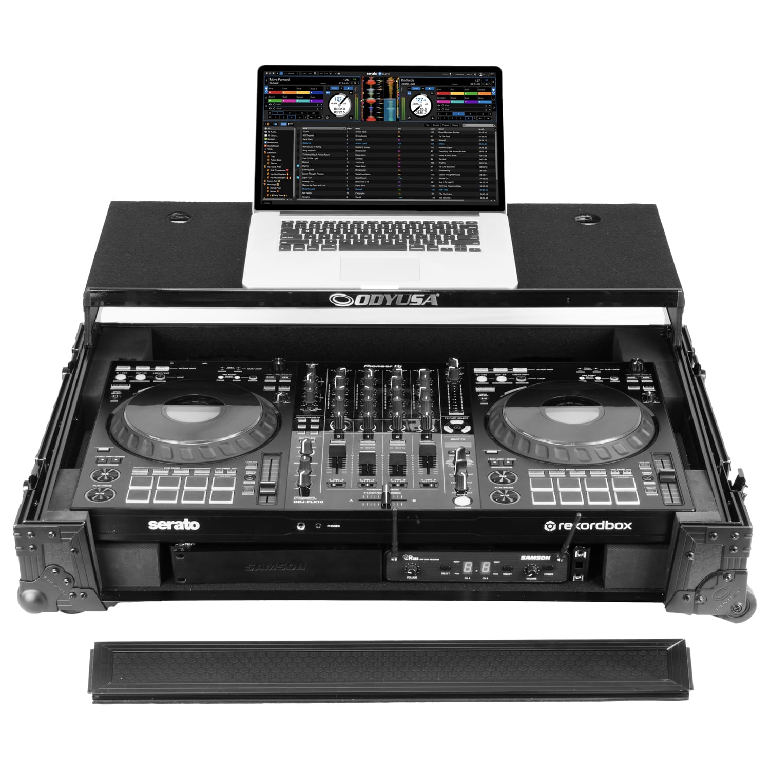 Disclaimer: Odyssey Innovative Designs strives to ensure the accuracy of the information contained herein. However, due to the constant changes in raw material availability and usage, improvements in design, typographical errors, and other factors that may be beyond our control, We reserve the right to make changes in designs, styles, features, colors, dimensions, and other specifications without prior notice. Gear (for examples, laptops, DJ controllers, turntables, mixers, microphones, headphones, needles, cartridges, mats, and others) shown in product images are not included. Certain areas of the product images may not be shown in scale due to the nature of the photography. Copyrighted logos and trademarks are those of the respective company: Akai, Alesis, Allen & Heath, American Audio, Apple, Avertec, B-52, BBE, Behringer, Boss, Cascio, Chauvet, Coemar, Cortex, Crown, Dell, Denon, Digidesign, Drawmer, Elation, Fender, Gemini, Gemsound, Hercules, Korg, M-Audio, Mackie, Marshall, Martin, Mesa, Multi-Cart, Numark, Ortofon, Pearl River, Peavey, Pioneer, Rane, Robe, Roland, Serato, Shure, Sony, Soundcraft, Tascam, Technics, Traktor Scratch, Vestax, Vox, Yamaha, etc. Equipment pictured not included.