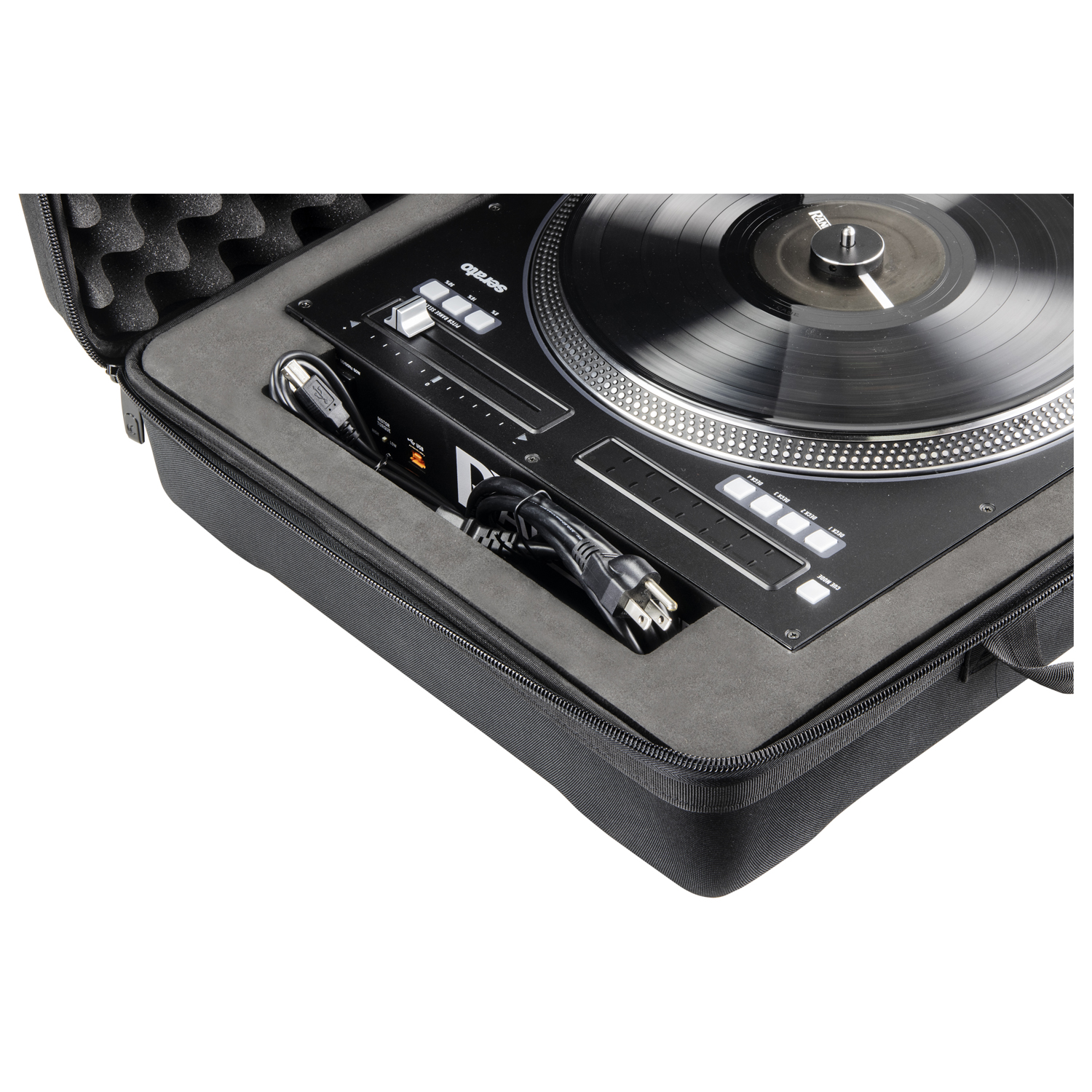 The sleek reinforced stitched molded shell design of Odyssey's Streemline™ series EVA cases brings a new standard to DJ gear protection. Effective protection efficiency and versatility is the key. Featuring embossed corners and a fully foam padded interior, the BMSRANE12TOUR Tour Pro Series case is perfect the Rane Twelve Motorized Turntable Controller with enough room for your essential compact accessories such as power supplies, small hard drives, cables, and more! These durable lightweight carry cases have large top grade custom logo zippers, comfortable rivet enforced double handles, and non-slip shoulder straps to ensure secure mobility. Keep your mind at ease as you flow on down to your gigs with a signature series Streemline™ DJ case!
