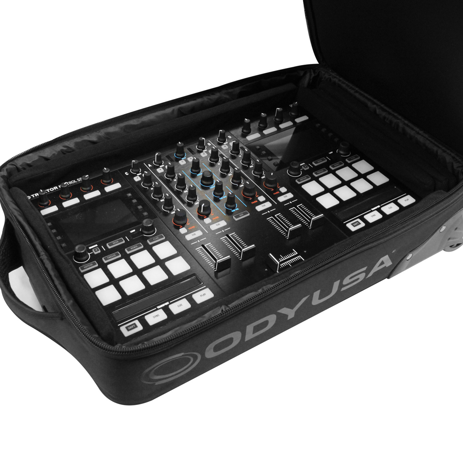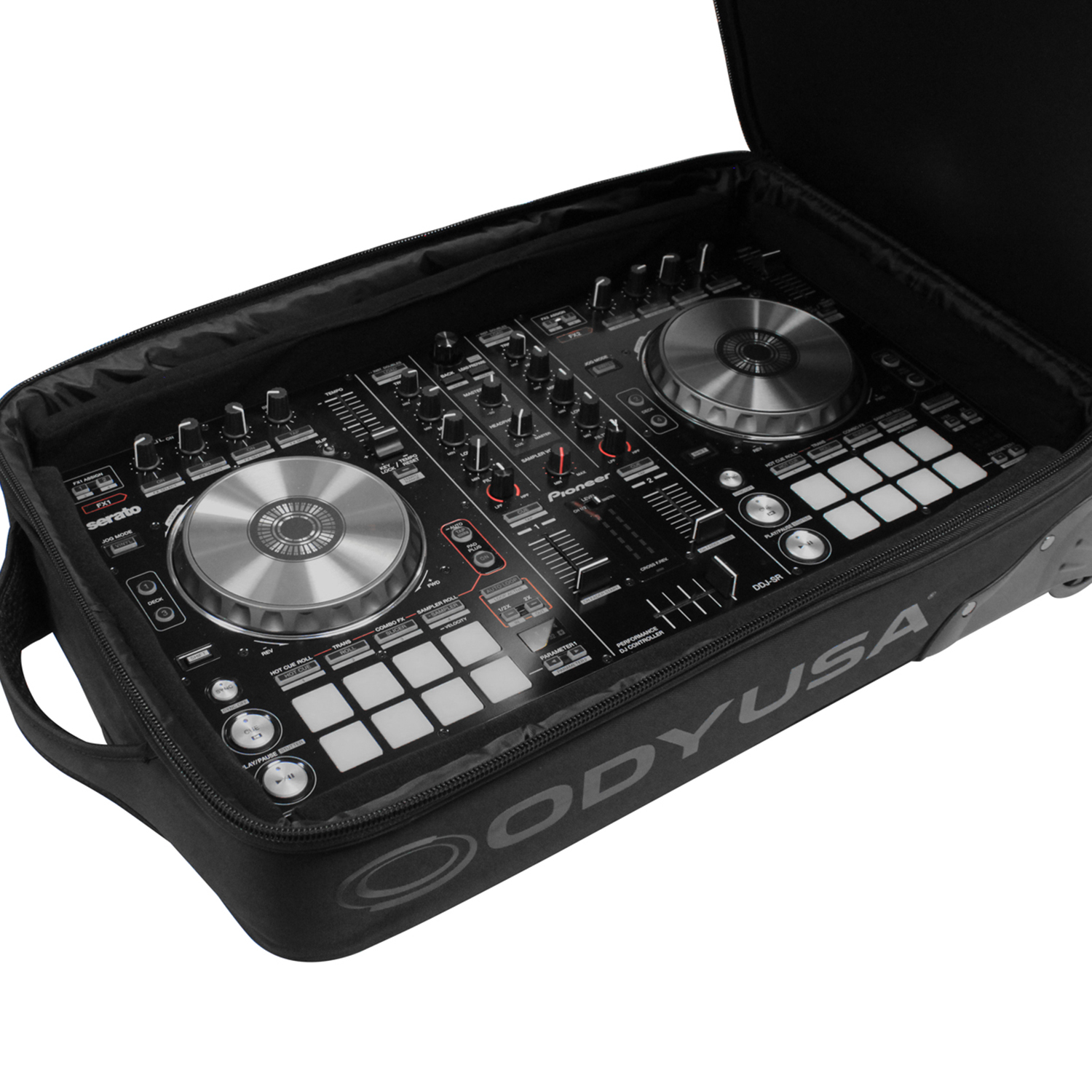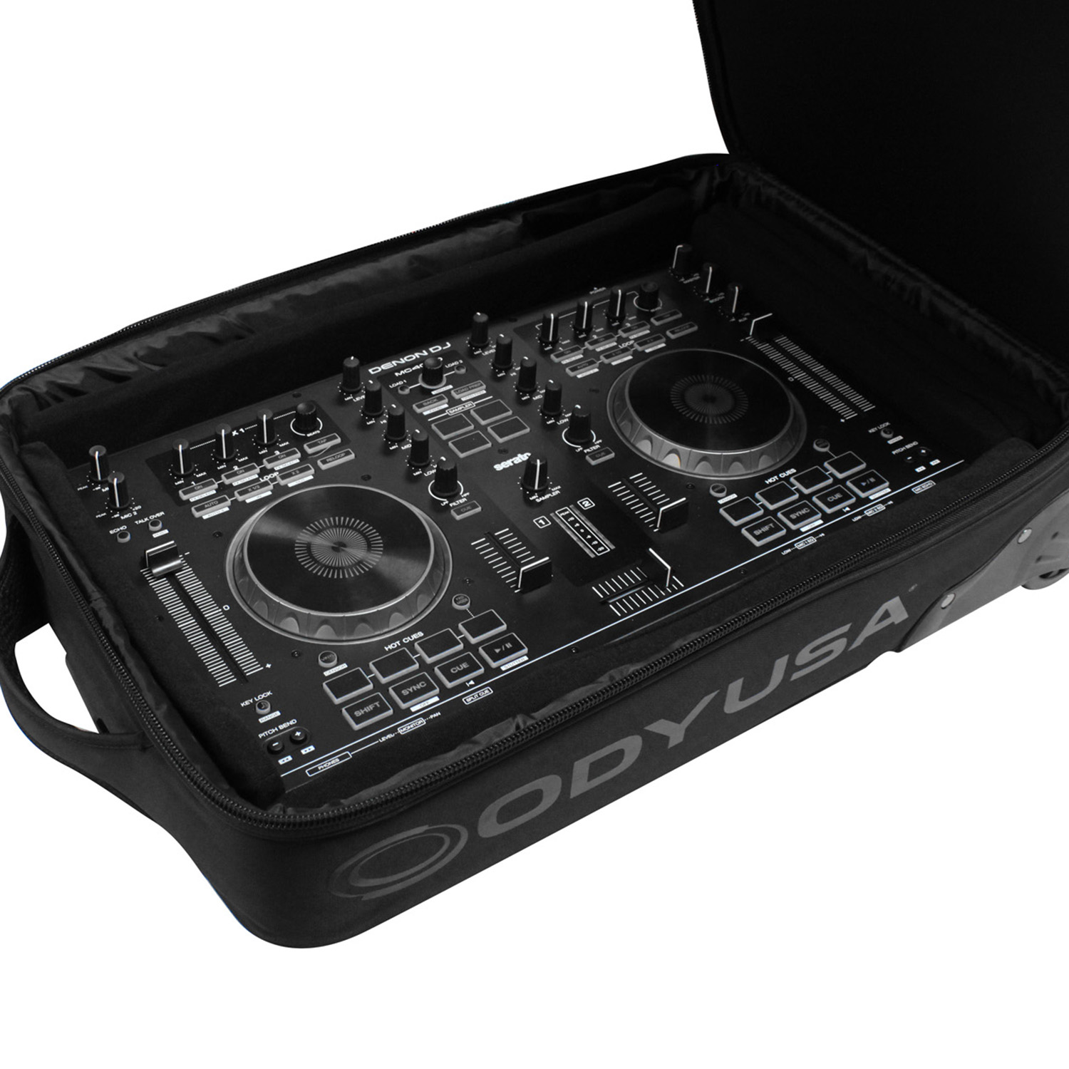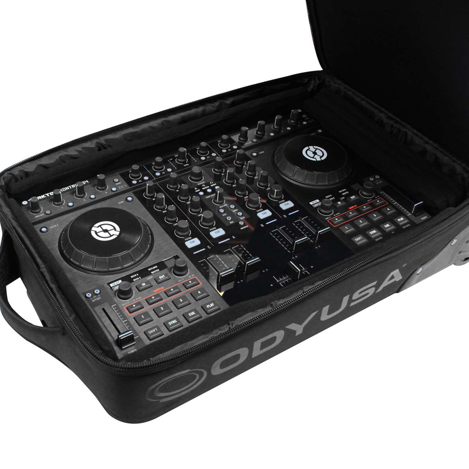 Disclaimer: Odyssey Innovative Designs strives to ensure the accuracy of the information contained herein. However, due to the constant changes in raw material availability and usage, improvements in design, typographical errors, and other factors that may be beyond our control, We reserve the right to make changes in designs, styles, features, colors, dimensions, and other specifications without prior notice. Gear (for examples, laptops, DJ controllers, turntables, mixers, microphones, headphones, needles, cartridges, mats, and others) shown in product images are not included. Certain areas of the product images may not be shown in scale due to the nature of the photography. Copyrighted logos and trademarks are those of the respective company: Akai, Alesis, Allen & Heath, American Audio, Apple, Avertec, B-52, BBE, Behringer, Boss, Cascio, Chauvet, Coemar, Cortex, Crown, Dell, Denon, Digidesign, Drawmer, Elation, Fender, Gemini, Gemsound, Hercules, Korg, M-Audio, Mackie, Marshall, Martin, Mesa, Multi-Cart, Numark, Ortofon, Pearl River, Peavey, Pioneer, Rane, Robe, Roland, Serato, Shure, Sony, Soundcraft, Tascam, Technics, Traktor Scratch, Vestax, Vox, Yamaha, etc. Equipment pictured not included.