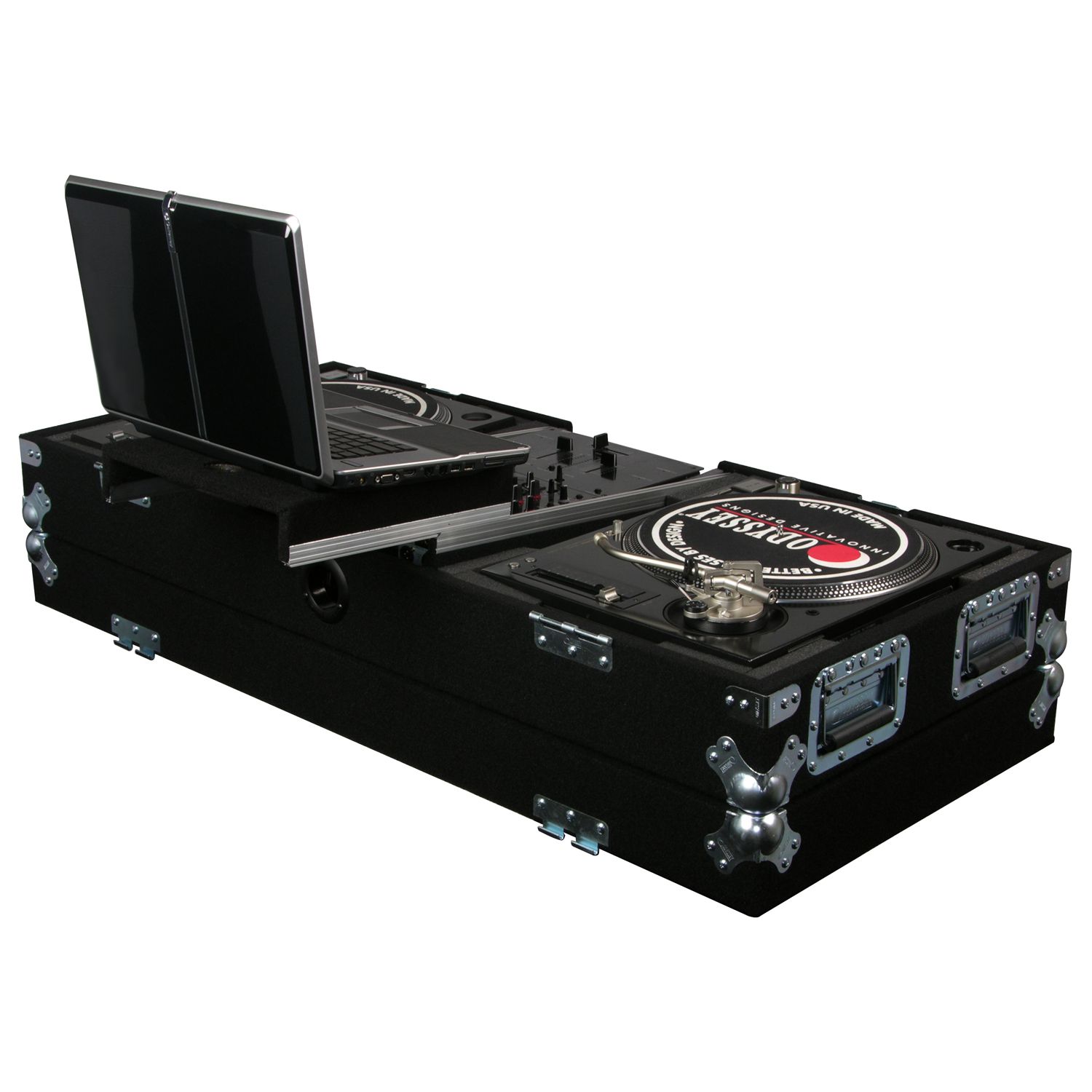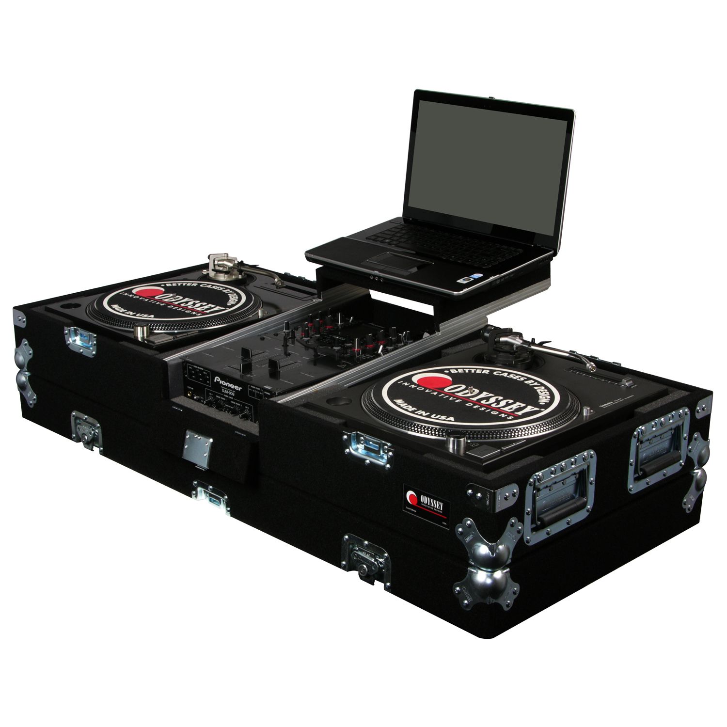 Disclaimer: Odyssey Innovative Designs strives to ensure the accuracy of the information contained herein. However, due to the constant changes in raw material availability and usage, improvements in design, typographical errors, and other factors that may be beyond our control, We reserve the right to make changes in designs, styles, features, colors, dimensions, and other specifications without prior notice. Gear (for examples, laptops, DJ controllers, turntables, mixers, microphones, headphones, needles, cartridges, mats, and others) shown in product images are not included. Certain areas of the product images may not be shown in scale due to the nature of the photography. Copyrighted logos and trademarks are those of the respective company: Akai, Alesis, Allen & Heath, American Audio, Apple, Avertec, B-52, BBE, Behringer, Boss, Cascio, Chauvet, Coemar, Cortex, Crown, Dell, Denon, Digidesign, Drawmer, Elation, Fender, Gemini, Gemsound, Hercules, Korg, M-Audio, Mackie, Marshall, Martin, Mesa, Multi-Cart, Numark, Ortofon, Pearl River, Peavey, Pioneer, Rane, Robe, Roland, Serato, Shure, Sony, Soundcraft, Tascam, Technics, Traktor Scratch, Vestax, Vox, Yamaha, etc. Equipment pictured not included.