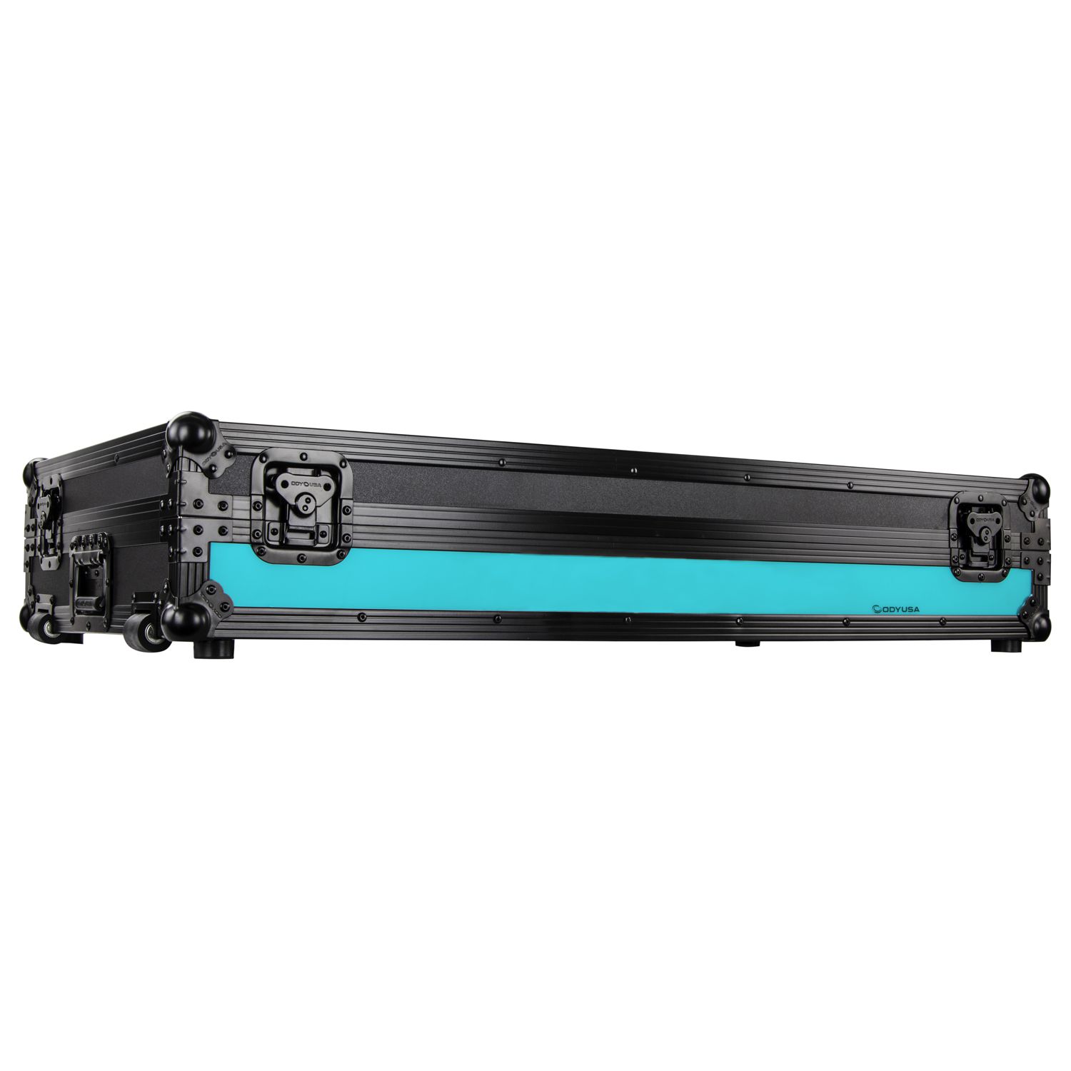The ordinary has become extraordinary with Odyssey's Flight FX™ case series. Embedded into the case wall is a color changing multi-mode LED panel that runs across the front of the case. The panel can be set to any one of seven colors or can be set at a variety of color changing modes as well as being connected and synchronized to other FX™ cases. Each Flight FX™ Series case is constructed with the same black anodized and powder coated black hardware as our Flight Zone™ Black Label™ cases complimenting the visual aura of the glowing panel. Become center stage at any gig behind these cases.