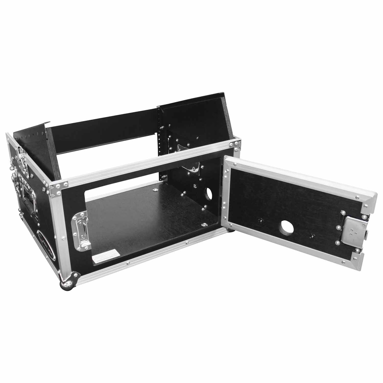 Our Combo Racks give you the best of both worlds. Mount mixers and controllers on top for convenient access and all other essentials below. Each features heavy-duty rubber feet (non-wheeled versions), spring-loaded handles, and recessed hardware. "W" versions feature heavy-duty casters on a dolly plate (2 with sure stop brakes).