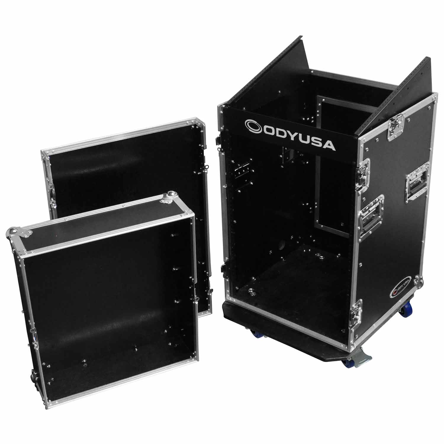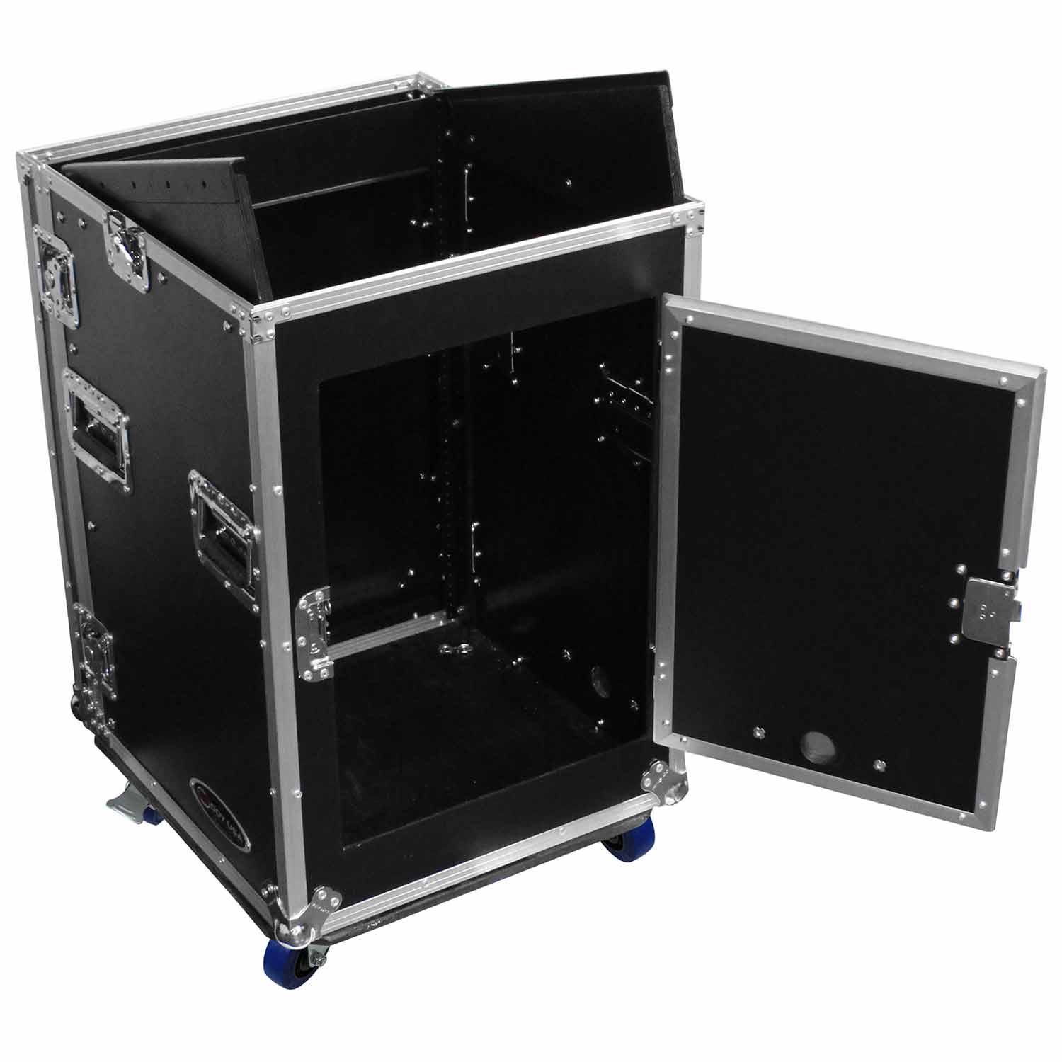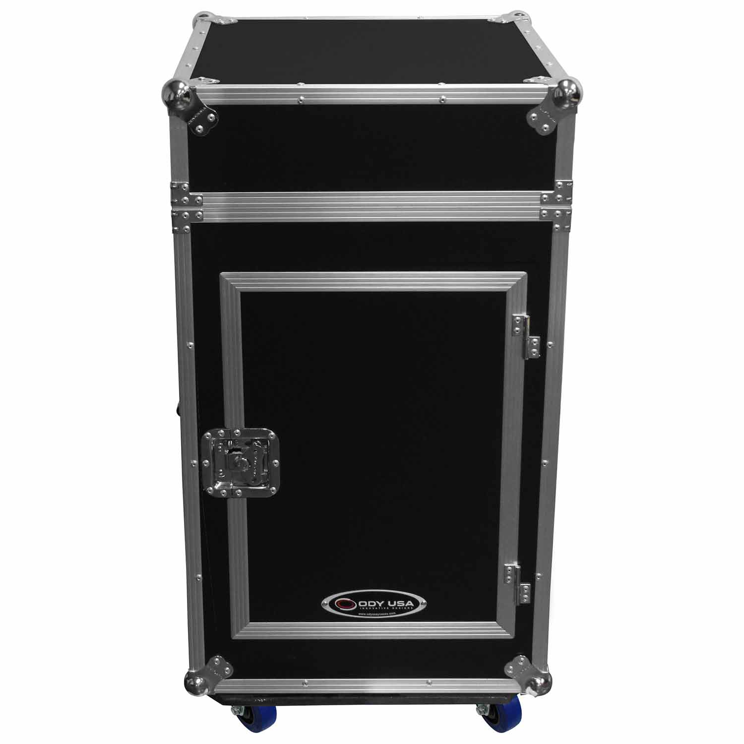 Our Combo Racks give you the best of both worlds. Mount mixers and controllers on top for convenient access and all other essentials below. Each features heavy-duty rubber feet (non-wheeled versions), spring-loaded handles, and recessed hardware. "W" versions feature heavy-duty casters on a dolly plate (2 with sure stop brakes).