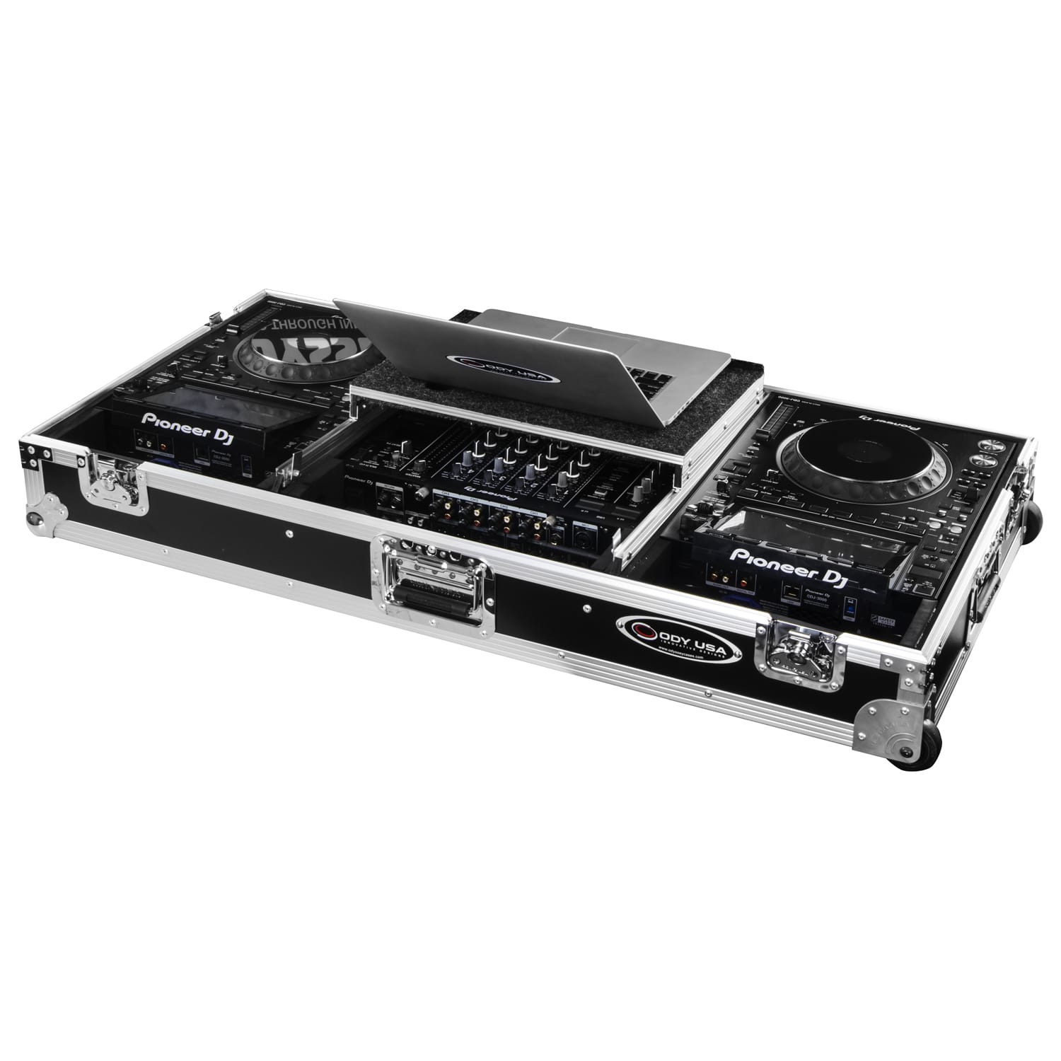 Odyssey DJM-A9 and CDJ-3000 or Similar Size Gear DJ Coffin Case with Glide Style Laptop Platform