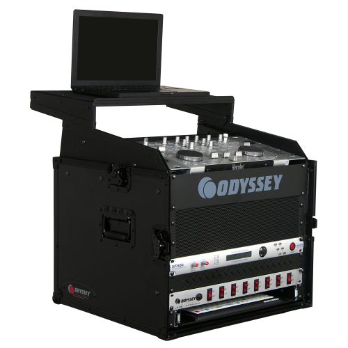 Odyssey combos racks feature our patented sliding laptop platform mounted above a 19" ATA case. At your gig, set your laptop on the carpeted platform shelf surface, plug in and you're ready to go. Slide it forward to use your laptop. Slide it back to use the mixer section underneath. Keep your laptop close and safe on a sturdy new Glide Style™ Combo case.