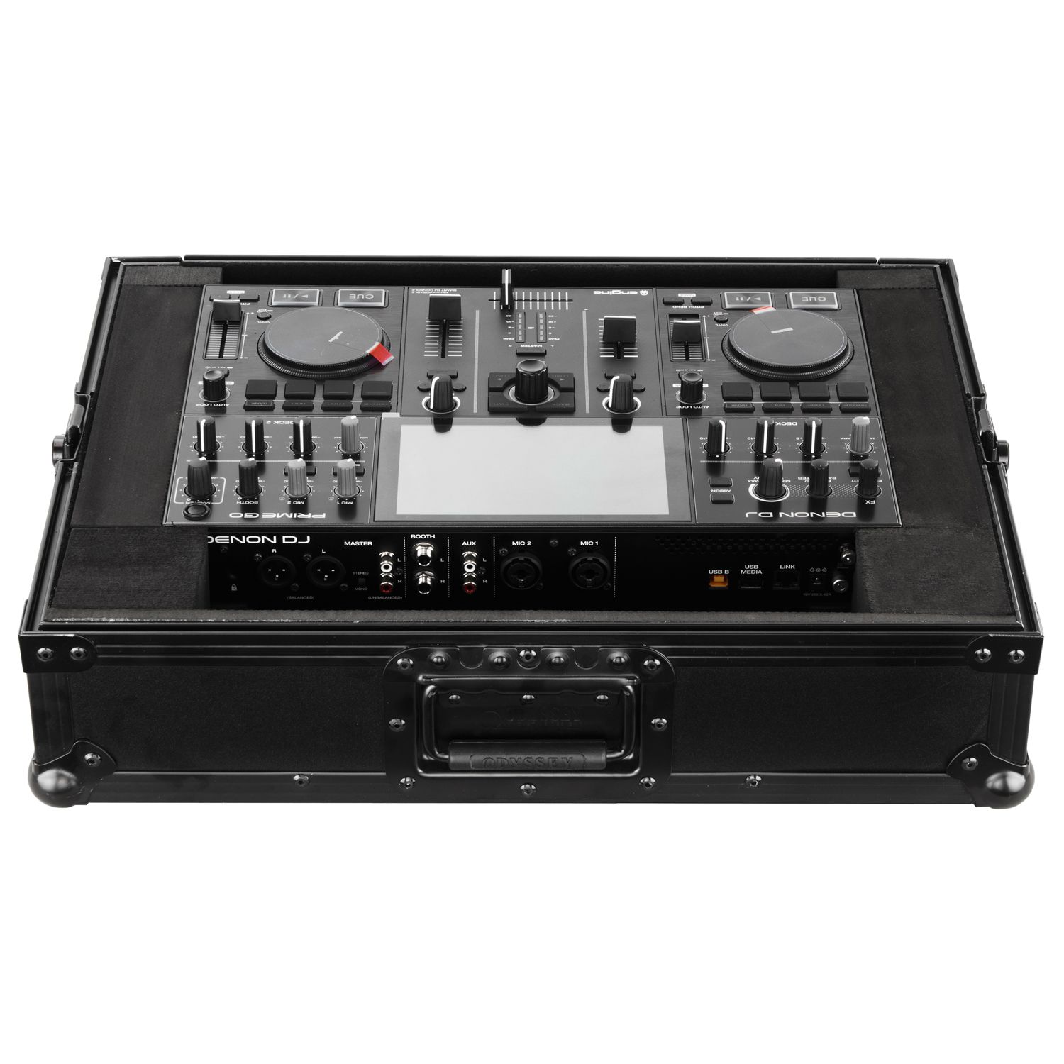 The Black Label™ FRPRIMEGOBLM case is designed to hold the Denon Prime GO 2-Deck Rechargeable Smart DJ Console with 7" Touchscreen. A V-cut™ removable front panel allows easy access to the front controls and headphone/mic jacks. Other features include rubber feet, hefty ball corners, heavy-duty recessed latches and handle, and plenty of space below the controller for accessories such as a wireless mix system.
