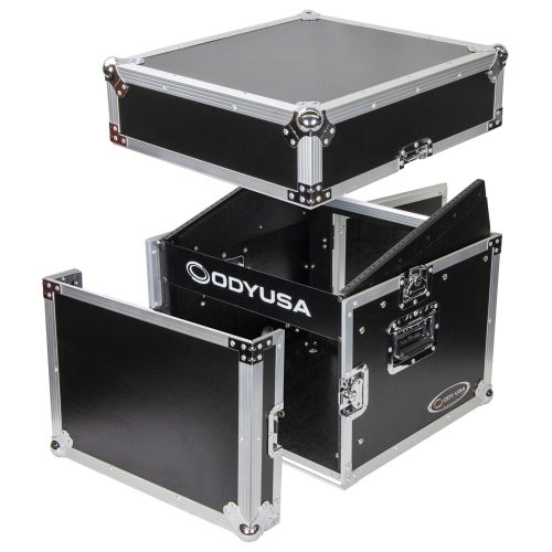 Our ATA Combo Racks give you the best of both worlds. Mount mixers and controllers on top for convenient access and all other essentials below. Each features heavy-duty rubber feet (non-wheeled versions), spring-loaded handles, and recessed hardware. "W" versions feature heavy-duty casters on a dolly plate (2 with sure stop brakes) while "DLX" versions feature lids that double as side mount workstation tables.