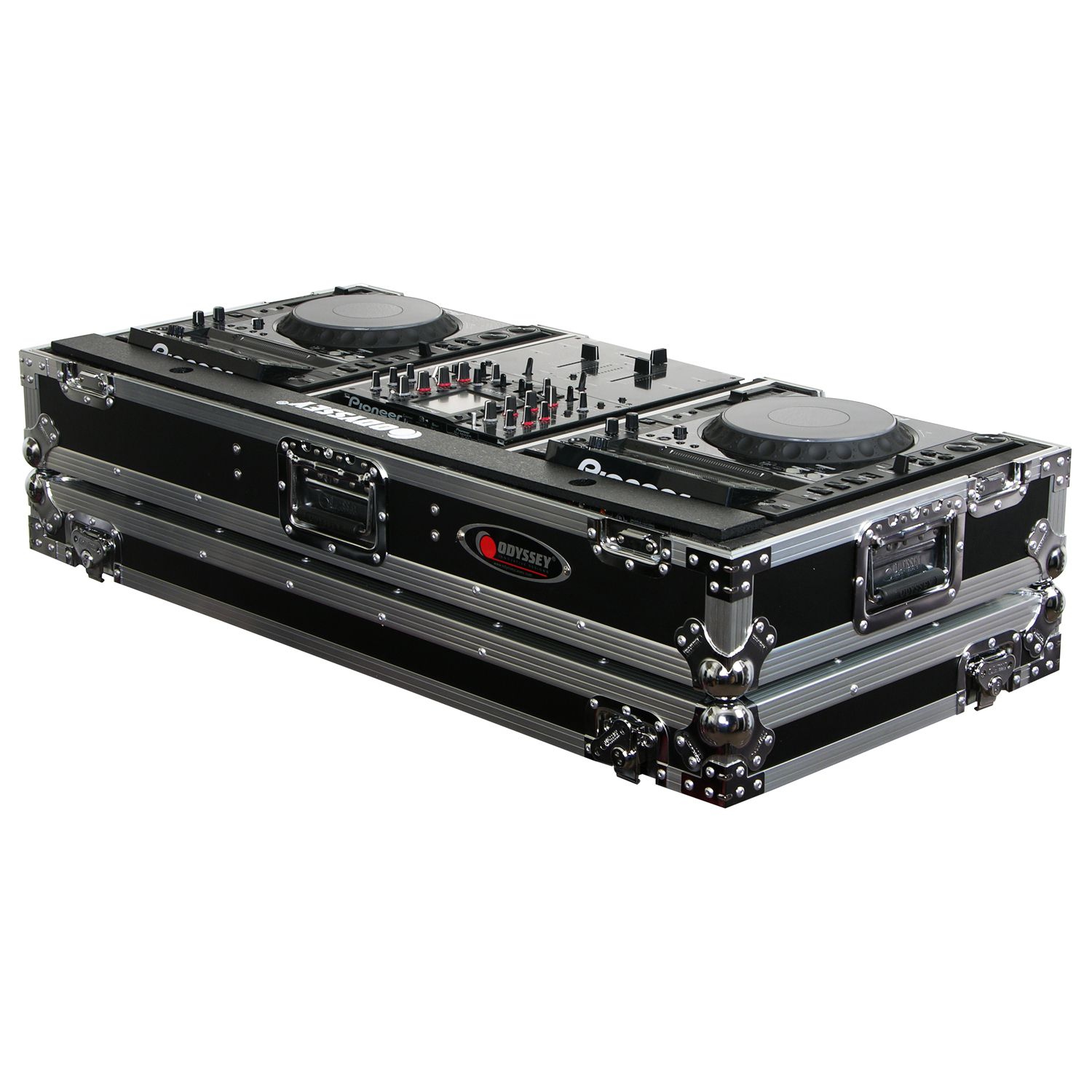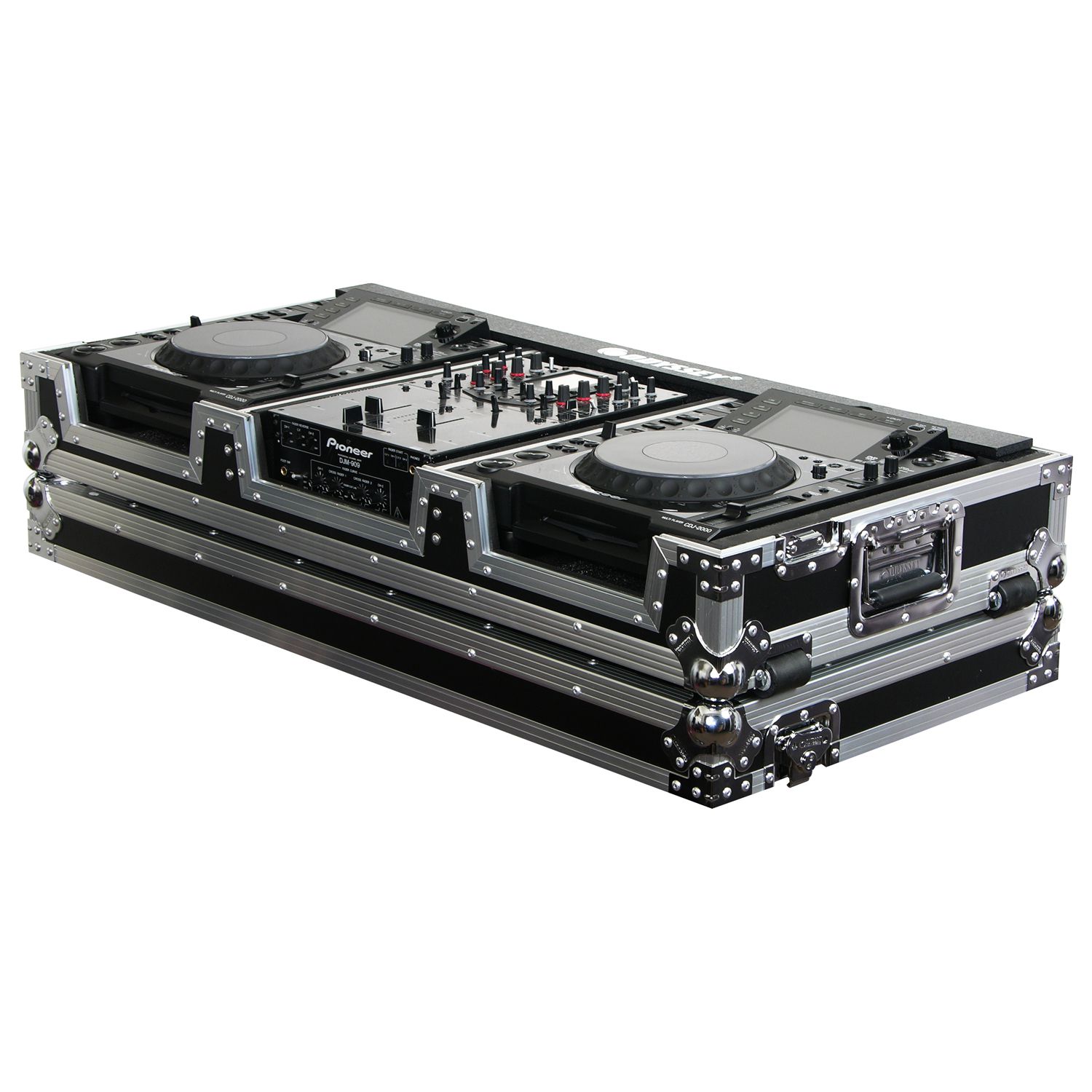 Our CD/digital media player DJ Coffins hold two large format tabletop CD/media players and one mixer. These ATA rolling coffins feature rugged built-in wheels, heavy-duty latches and spring-loaded handles, steel ball corners, and removable front access panels. Cabling is clean and easy through convenient access ports throughout.