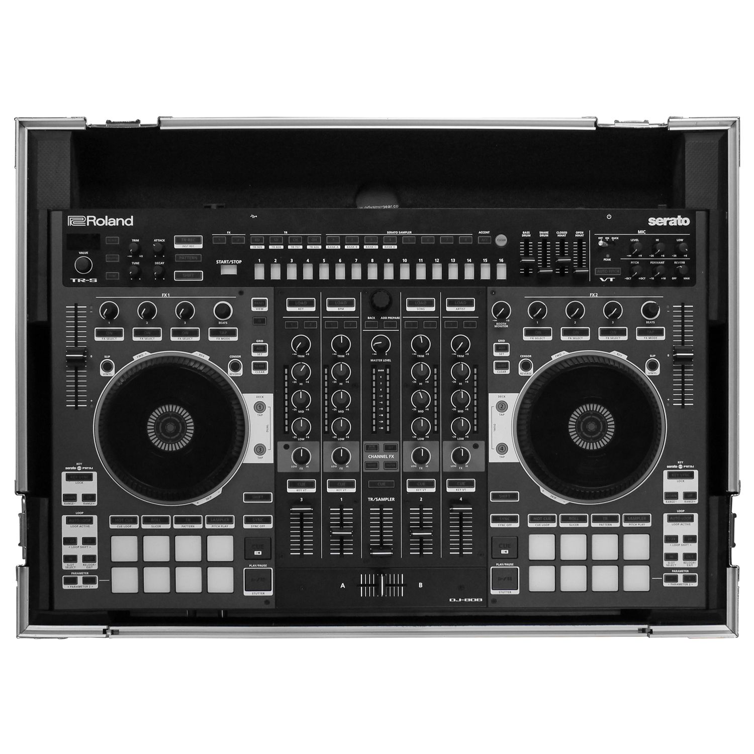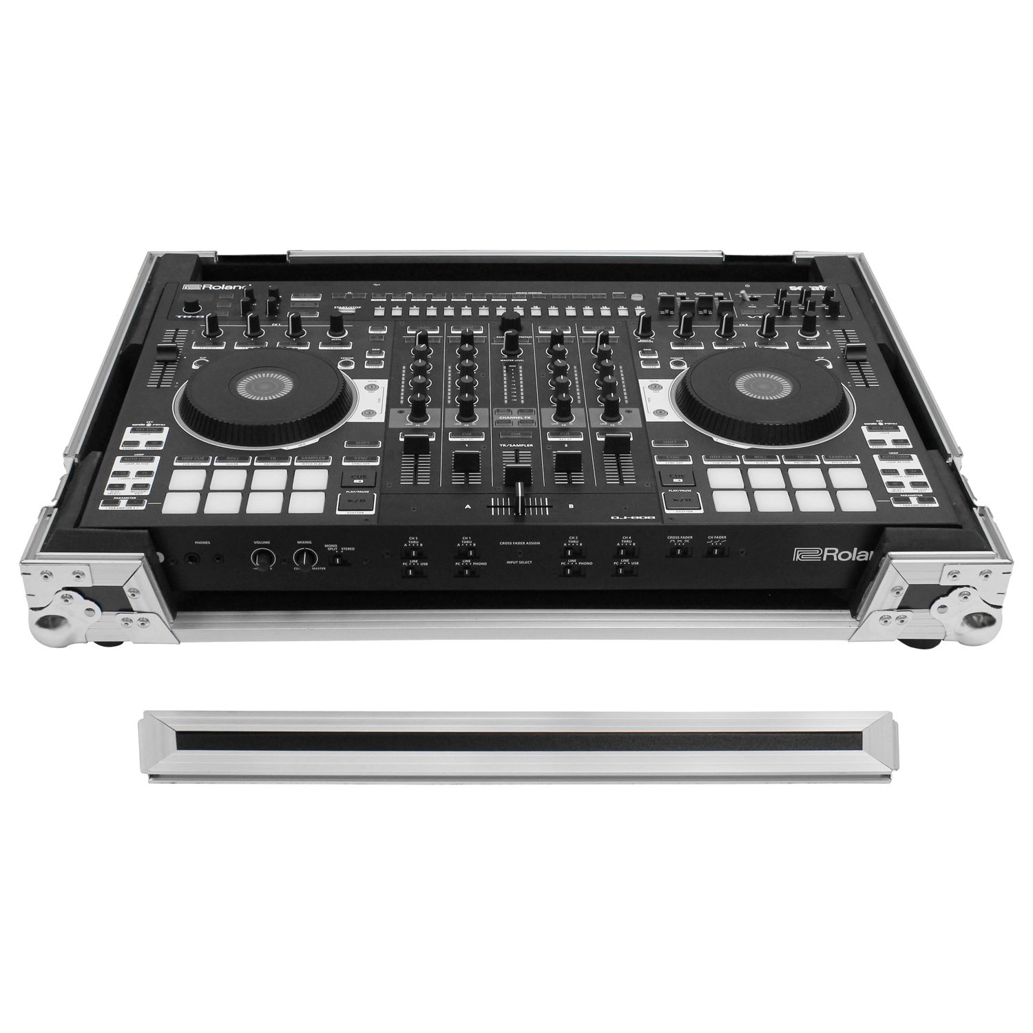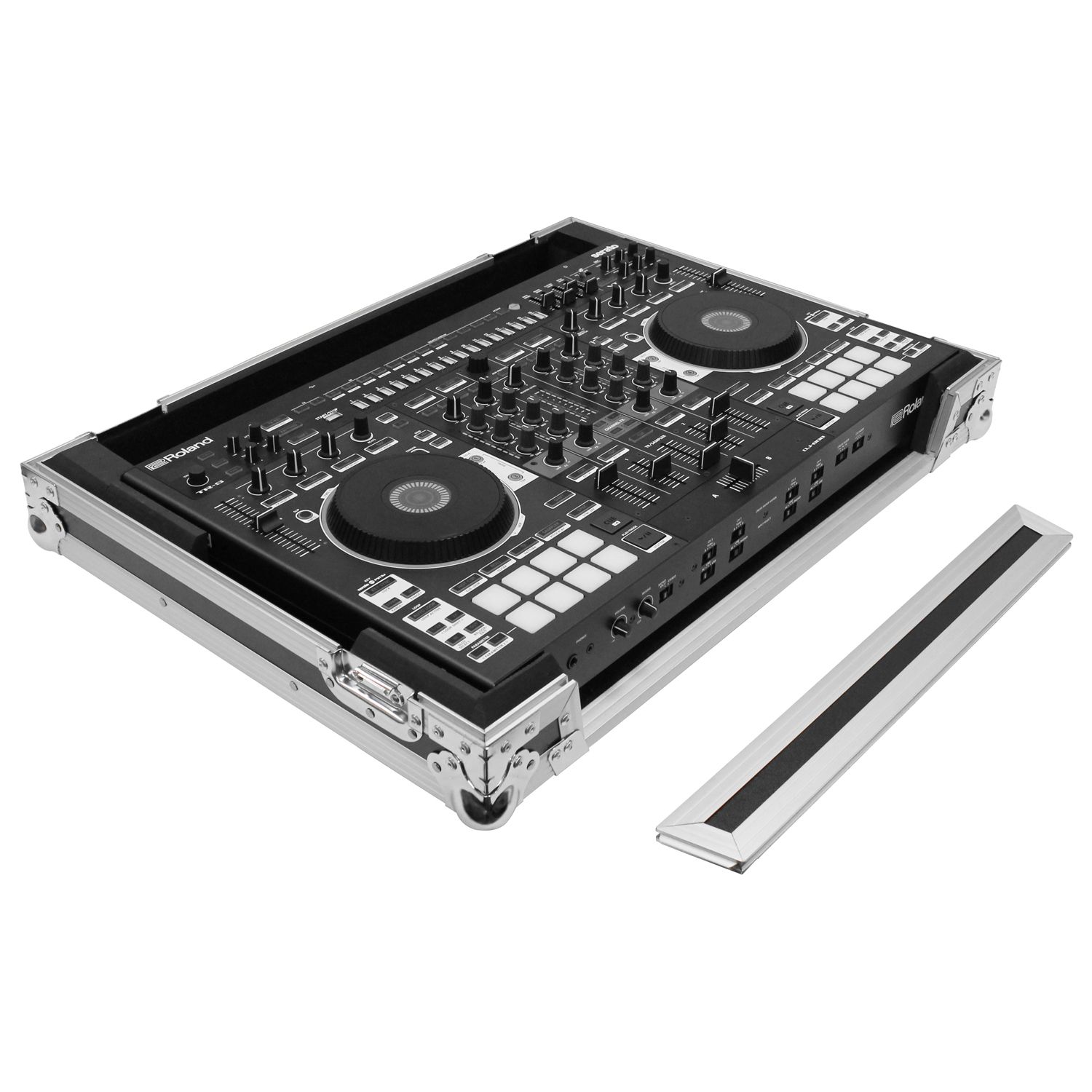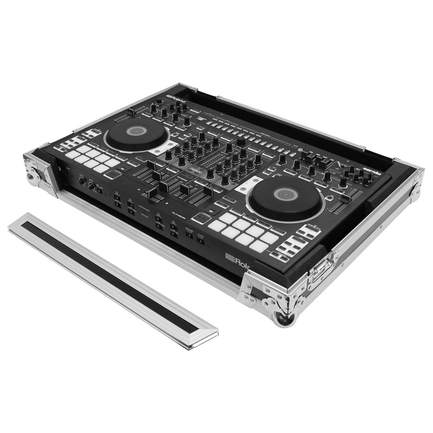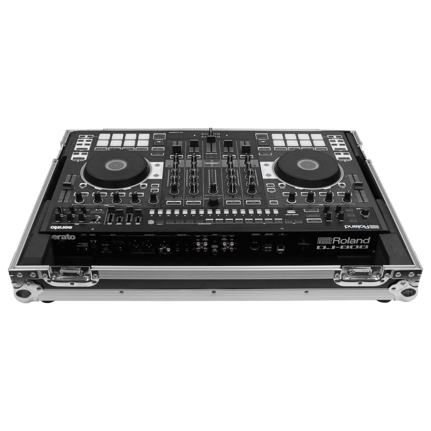 The Flight Zone™ FZDJ808 case is designed to hold the Roland DJ-808 or Denon MC7000 DJ controllers. Its Features include our exclusive, patent pending, high-density bevel foam interior that is neatly angled upward to raise the controller for an efficient control surface. A V-cut™ removable front panel allows easy access to the front controls and headphone/mic jacks. Other features include rubber feet, hefty ball corners, and heavy-duty recessed latches and handle.