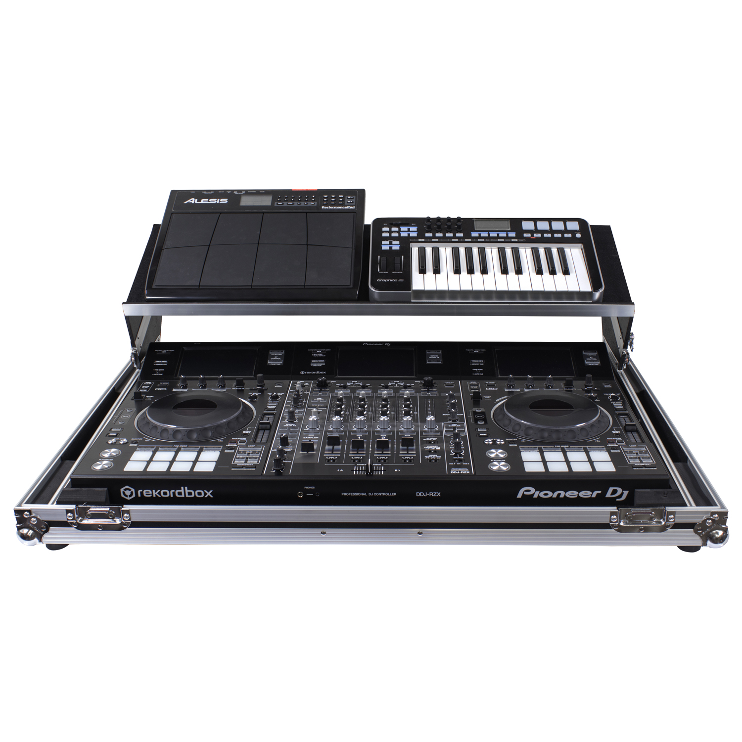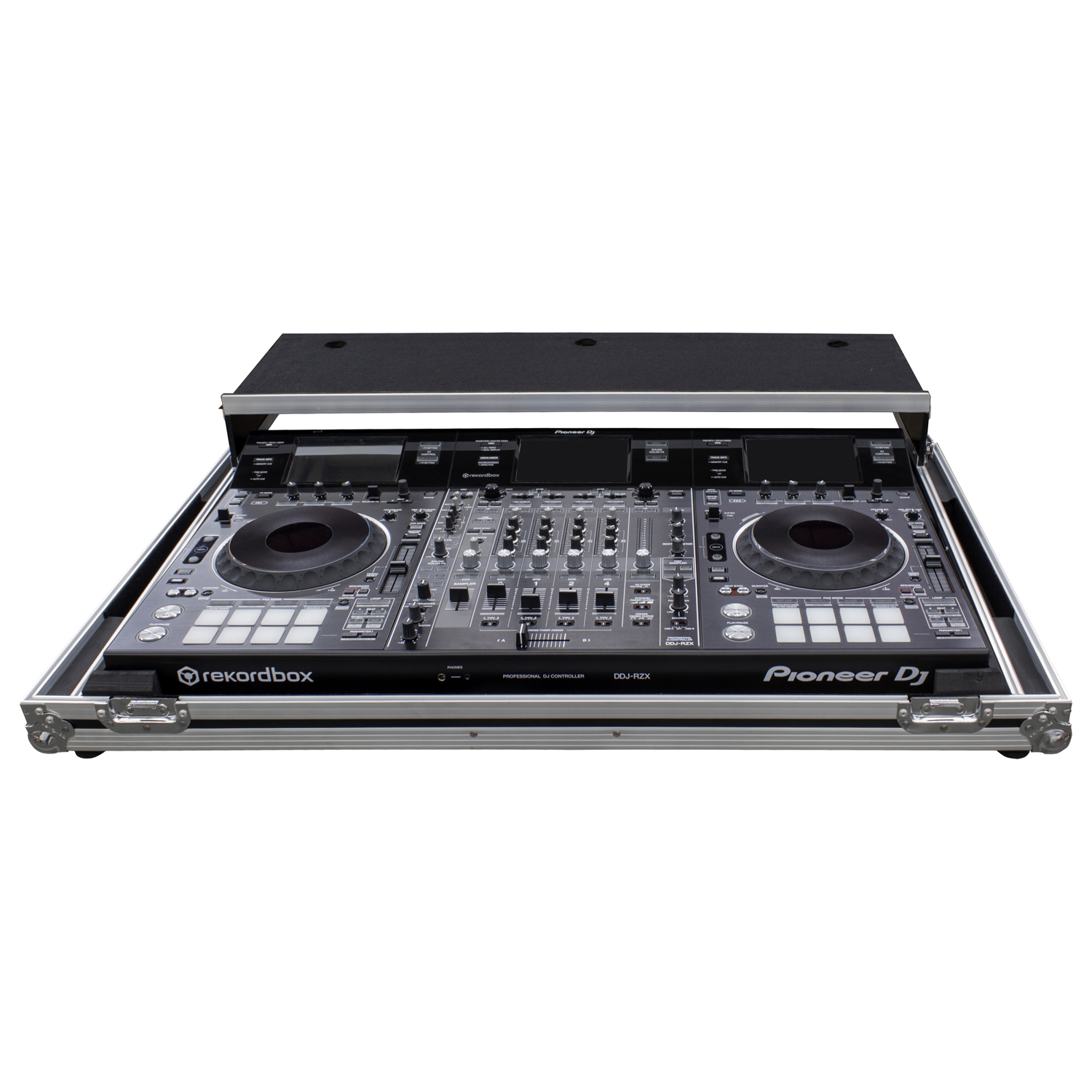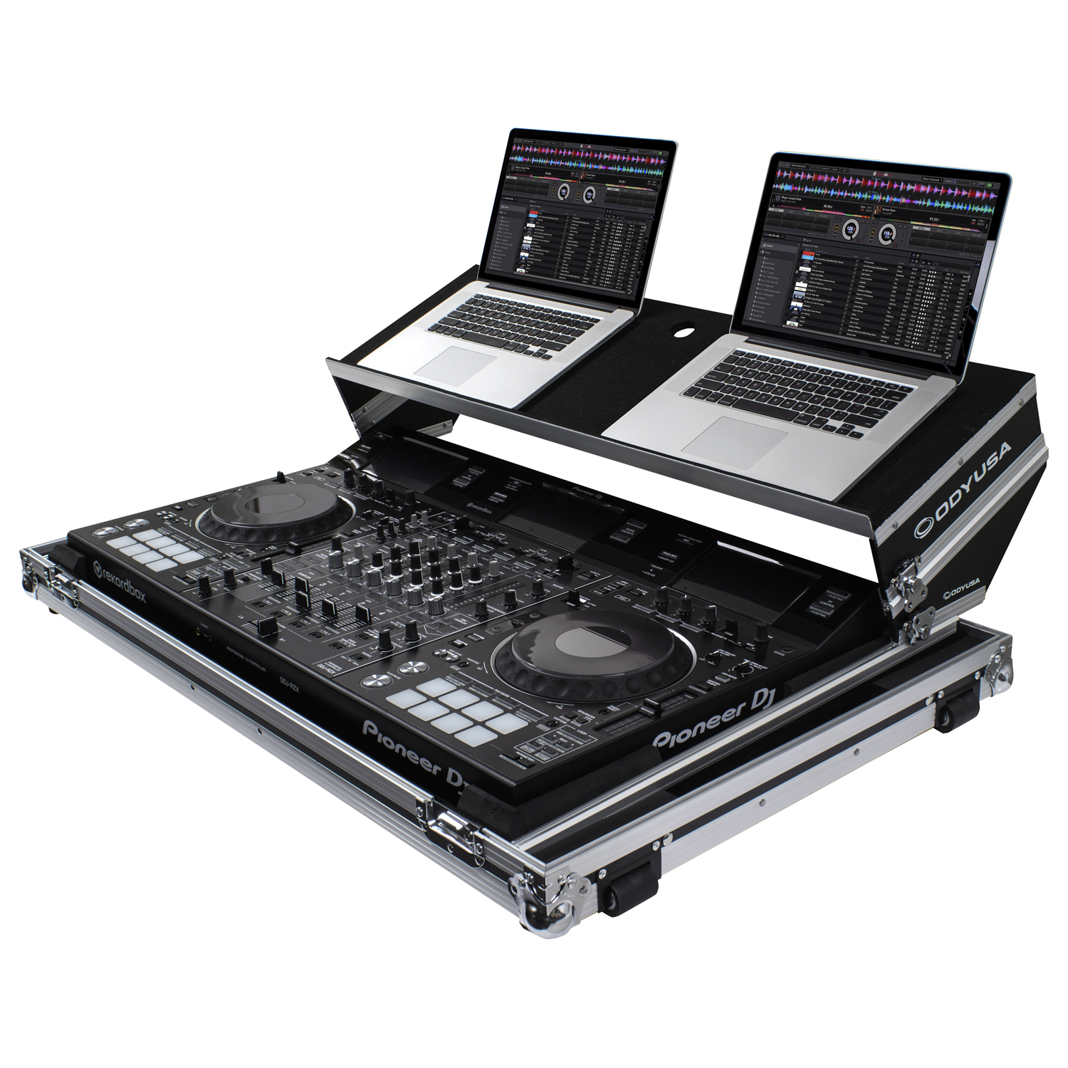The new Odyssey FZGSADDJRZXW Flight Zone™ case features a sleek reverse lid shallow bottom design that allows easy access to the Pioneer DDJ-RZX's front headphone jacks ports, and as part of our exciting new 'GSA' Producer Glide Style™ Series design, it also features a new "angle" to our patented Glide Style™ platform. Now you can choose to configure the gliding platform in the standard setup with a flat top surface, or add the additional side support panels that are included with the case to position the platform higher and at an angle. Either way, it's perfect for placing your laptop, tablet, effect processor, modular synthesizer, and other gear right where you want over the controller. Enhance your overall performance by using the angled configuration for superior visualization and reach of your remix production gear's knobs, trigger pads, faders, screens, switches, buttons, keys, etc.