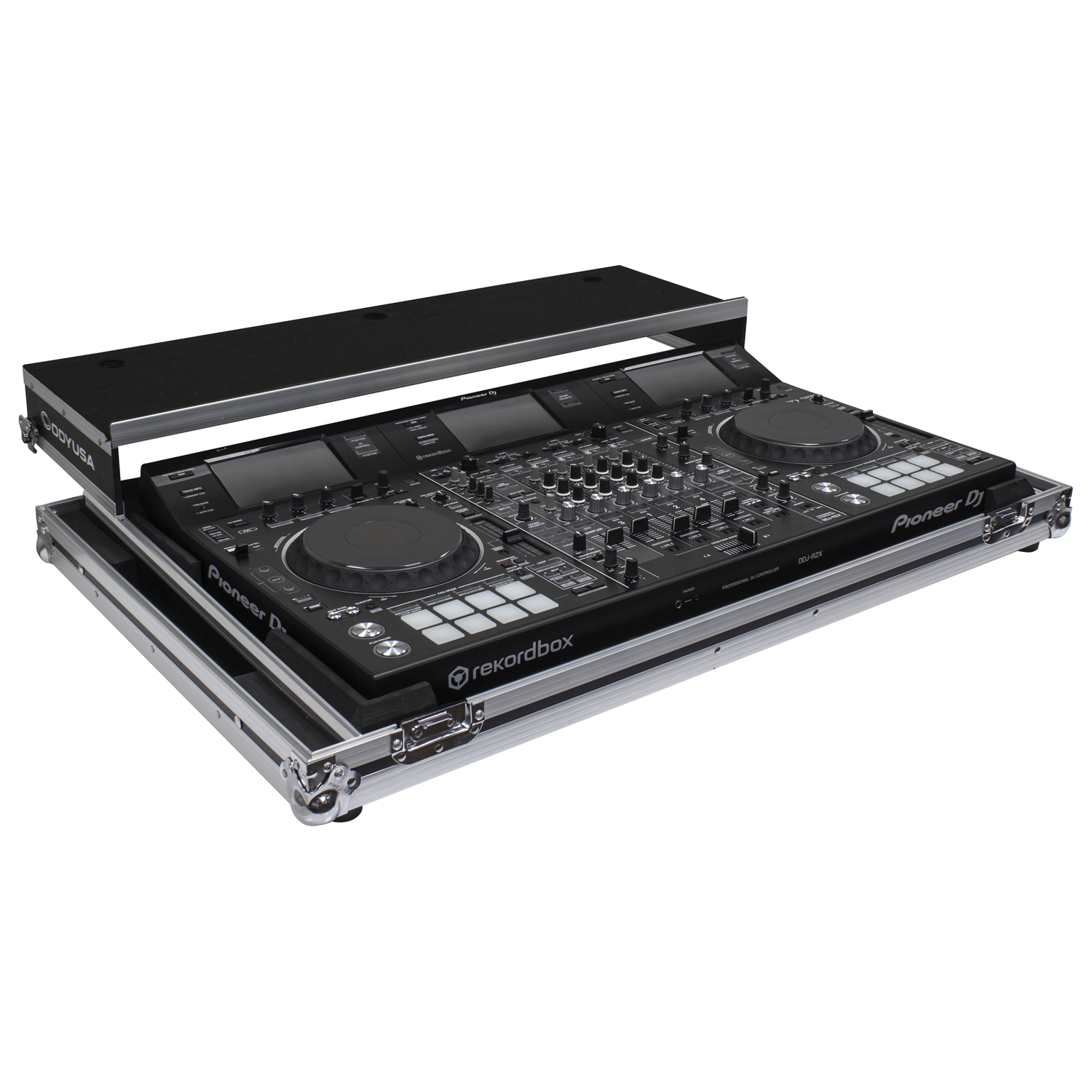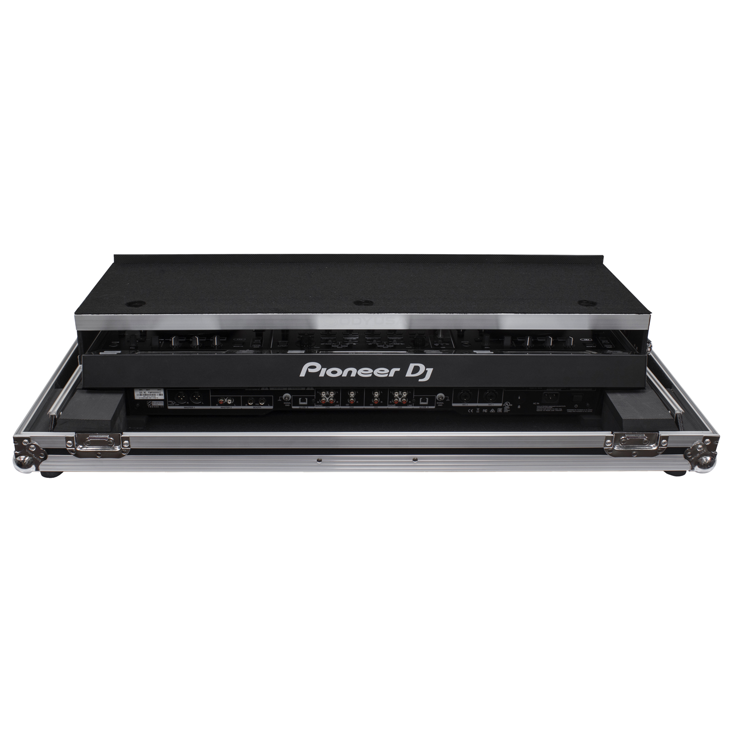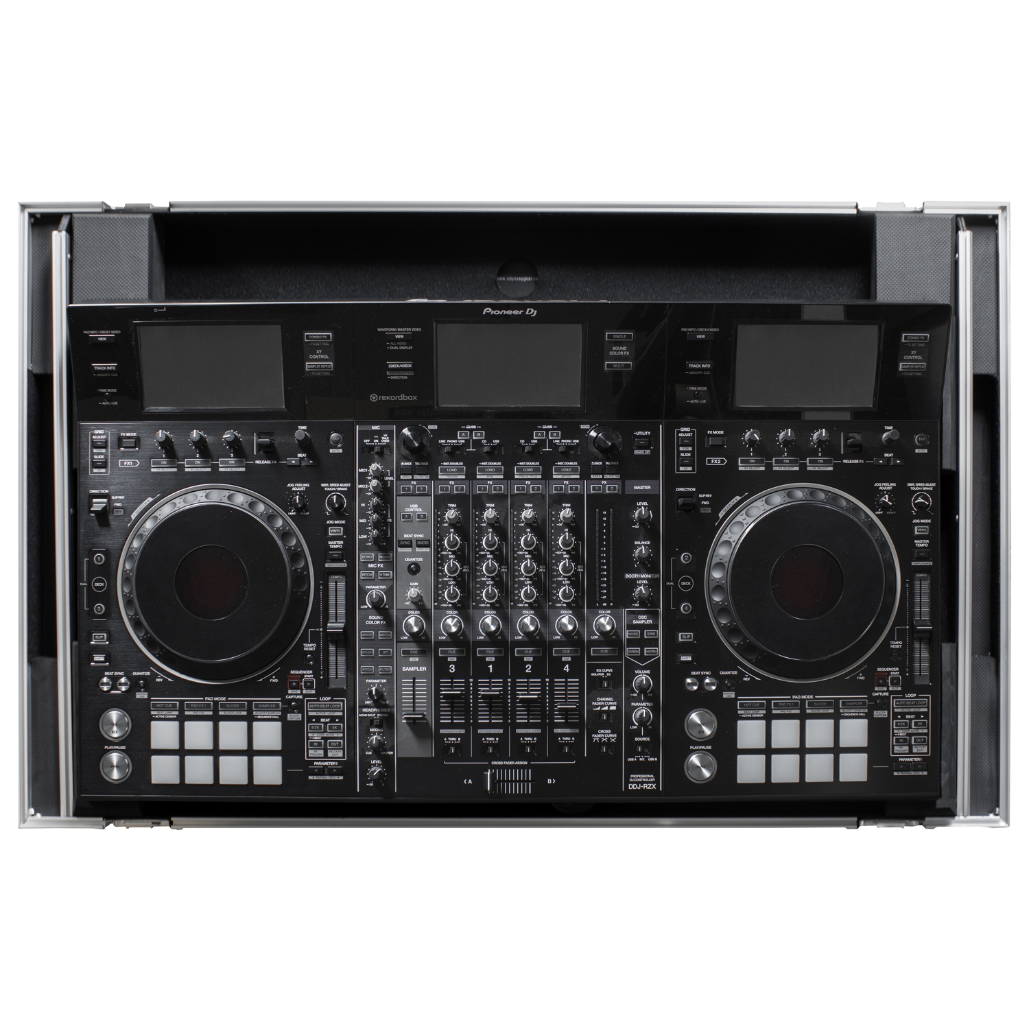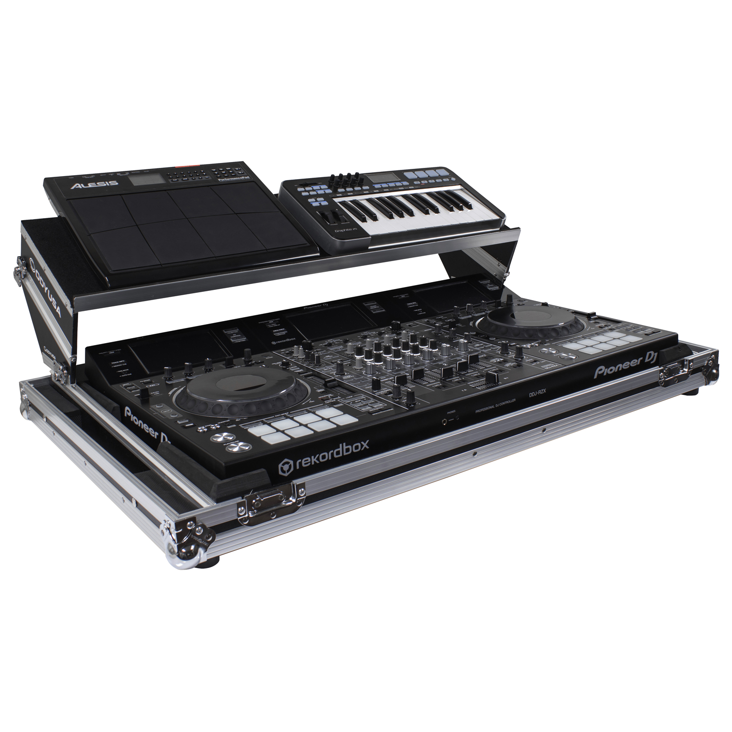 The new Odyssey FZGSADDJRZXW Flight Zone™ case features a sleek reverse lid shallow bottom design that allows easy access to the Pioneer DDJ-RZX's front headphone jacks ports, and as part of our exciting new 'GSA' Producer Glide Style™ Series design, it also features a new "angle" to our patented Glide Style™ platform. Now you can choose to configure the gliding platform in the standard setup with a flat top surface, or add the additional side support panels that are included with the case to position the platform higher and at an angle. Either way, it's perfect for placing your laptop, tablet, effect processor, modular synthesizer, and other gear right where you want over the controller. Enhance your overall performance by using the angled configuration for superior visualization and reach of your remix production gear's knobs, trigger pads, faders, screens, switches, buttons, keys, etc.