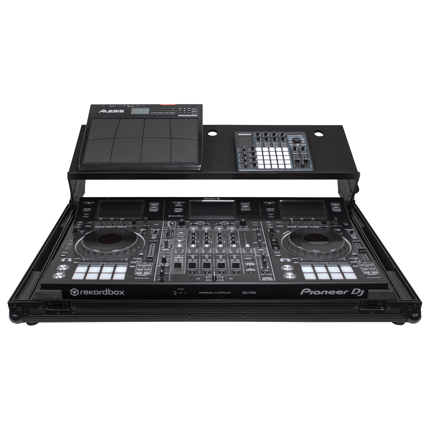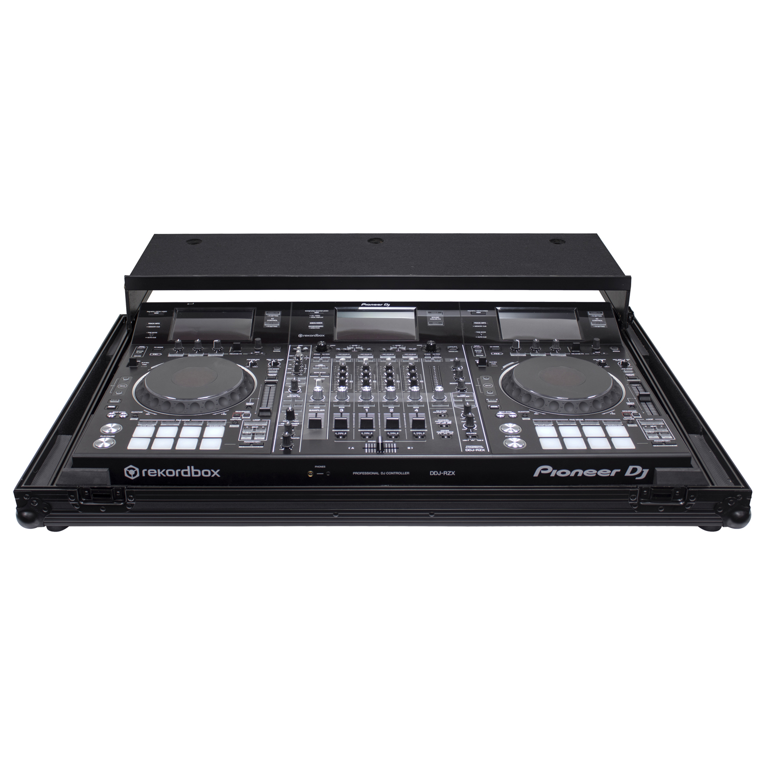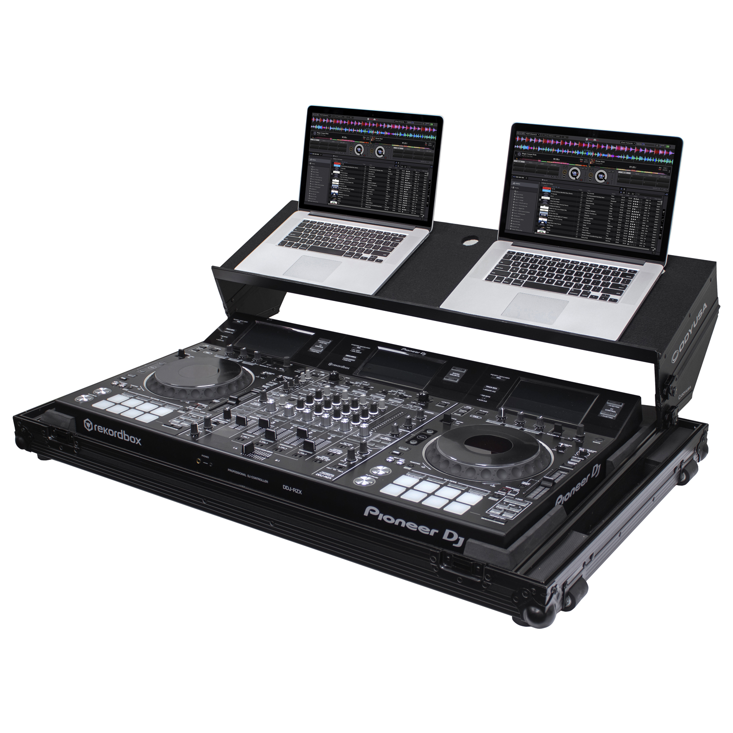 The new Odyssey FZGSADDJRZXWBL Black Label™ case features a sleek reverse lid shallow bottom design that allows easy access to the Pioneer DDJ-RZX's front headphone jacks ports, and as part of our exciting new 'GSA' Producer Glide Style™ Series design, it also features a new 'angle" to our patented Glide Style™ platform. Now you can choose to configure the gliding platform in the standard setup with a flat top surface, or add the additional side support panels that are included with the case to position the platform higher and at an angle. Either way, it's perfect for placing your laptop, tablet, effect processor, modular synthesizer, and other gear right where you want over the controller. Enhance your overall performance by using the angled configuration for superior visualization and reach of your remix production gear's knobs, trigger pads, faders, screens, switches, buttons, keys, etc.