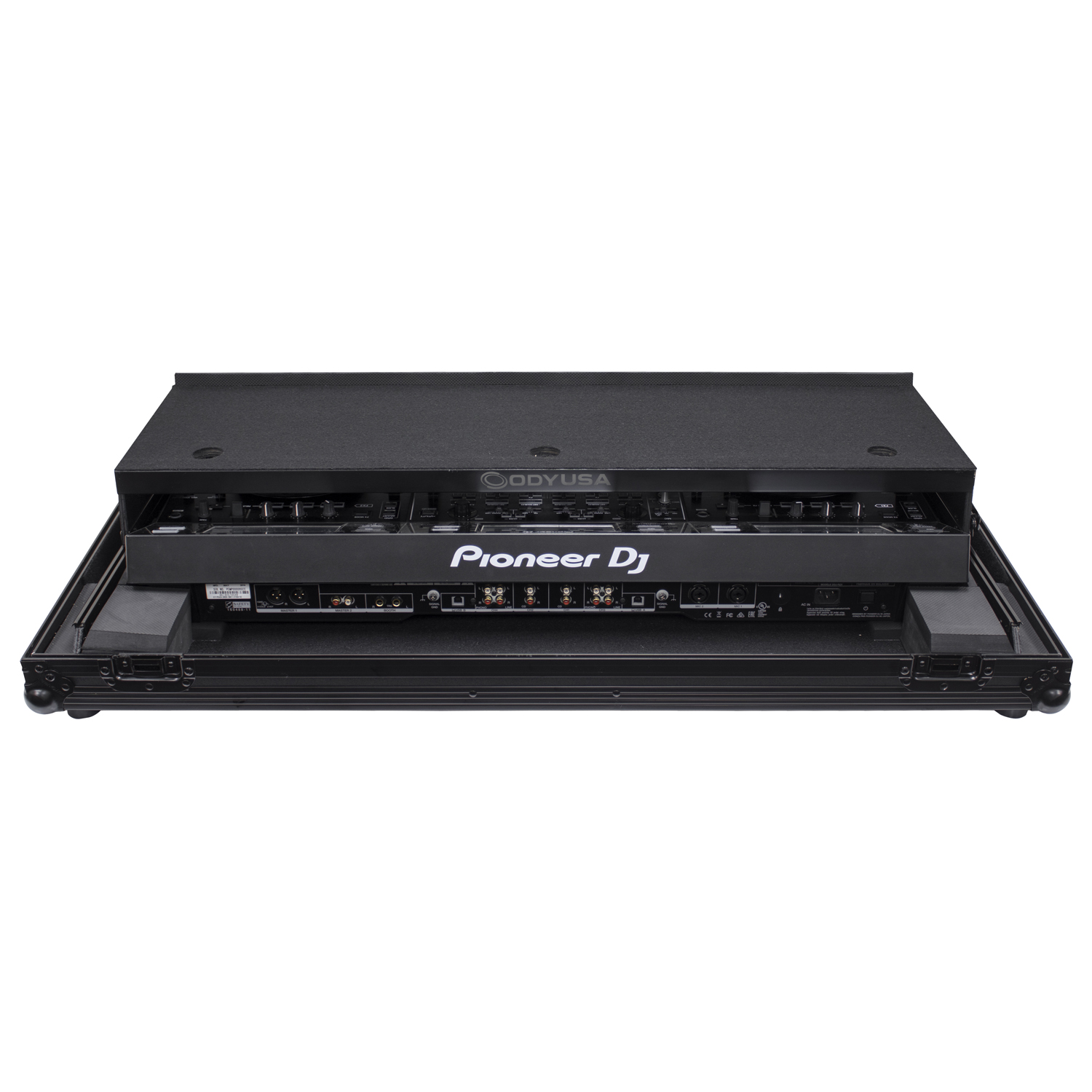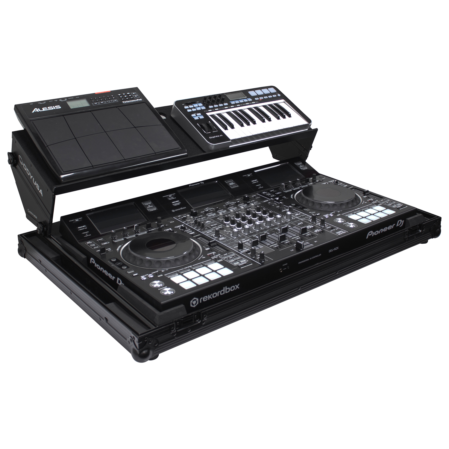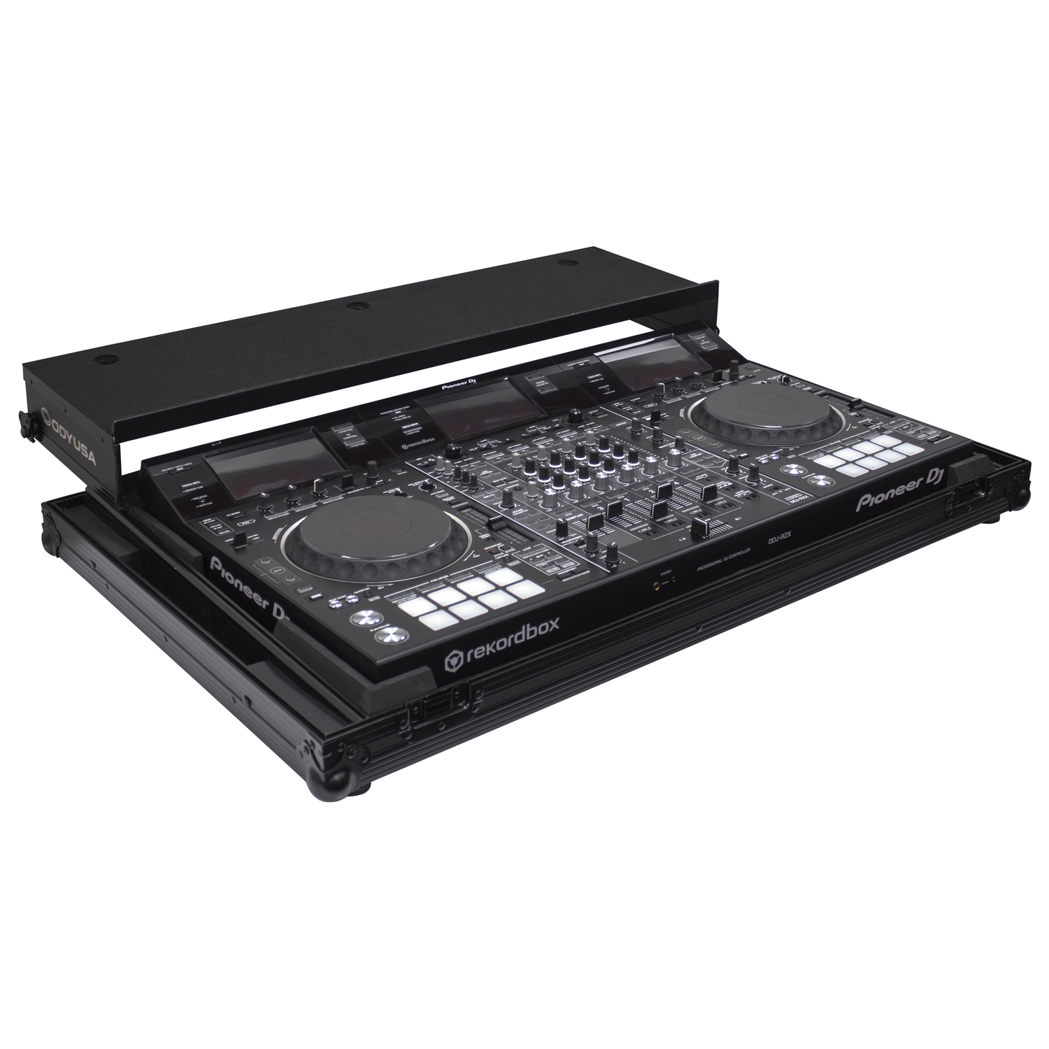 The new Odyssey FZGSADDJRZXWBL Black Label™ case features a sleek reverse lid shallow bottom design that allows easy access to the Pioneer DDJ-RZX's front headphone jacks ports, and as part of our exciting new 'GSA' Producer Glide Style™ Series design, it also features a new 'angle" to our patented Glide Style™ platform. Now you can choose to configure the gliding platform in the standard setup with a flat top surface, or add the additional side support panels that are included with the case to position the platform higher and at an angle. Either way, it's perfect for placing your laptop, tablet, effect processor, modular synthesizer, and other gear right where you want over the controller. Enhance your overall performance by using the angled configuration for superior visualization and reach of your remix production gear's knobs, trigger pads, faders, screens, switches, buttons, keys, etc.