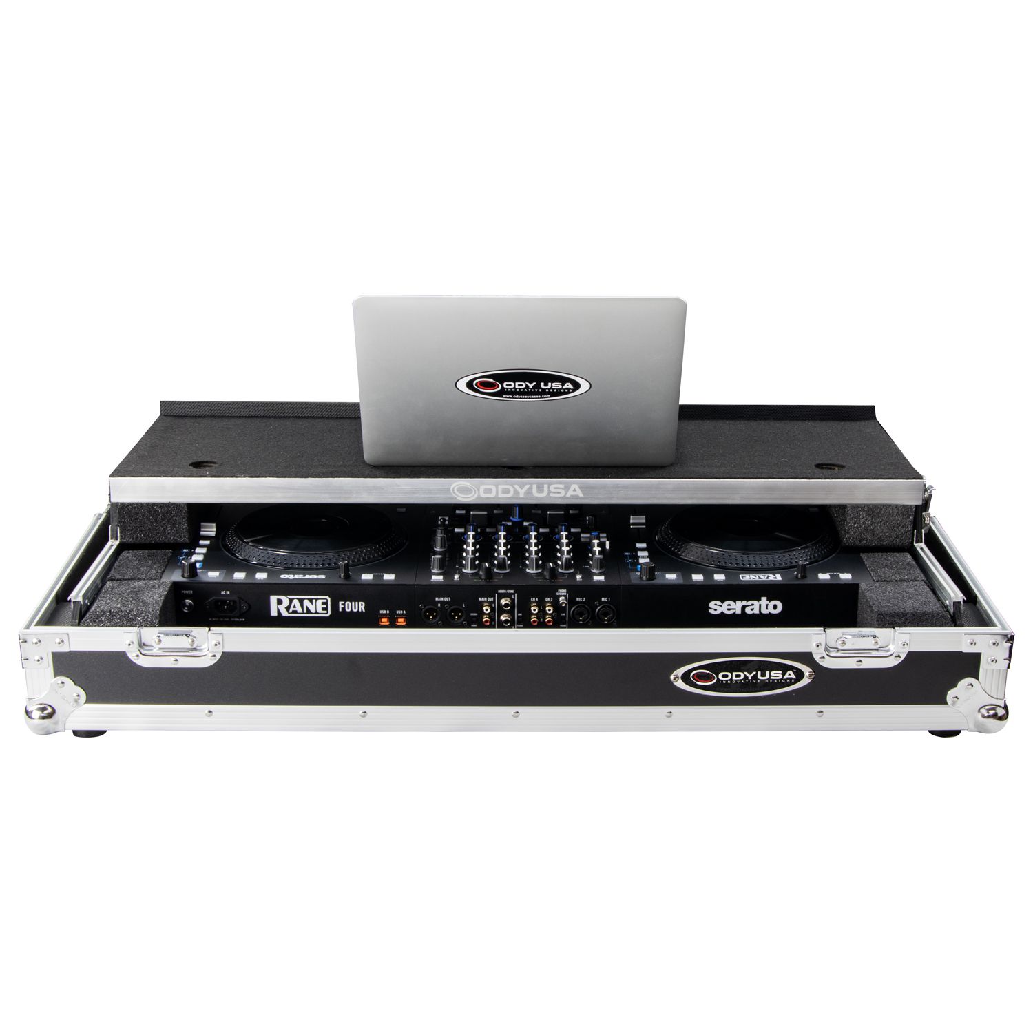 Disclaimer: Odyssey Innovative Designs strives to ensure the accuracy of the information contained herein. However, due to the constant changes in raw material availability and usage, improvements in design, typographical errors, and other factors that may be beyond our control, We reserve the right to make changes in designs, styles, features, colors, dimensions, and other specifications without prior notice. Gear (for examples, laptops, DJ controllers, turntables, mixers, microphones, headphones, needles, cartridges, mats, and others) shown in product images are not included. Certain areas of the product images may not be shown in scale due to the nature of the photography. Copyrighted logos and trademarks are those of the respective company: Akai, Alesis, Allen & Heath, American Audio, Apple, Avertec, B-52, BBE, Behringer, Boss, Cascio, Chauvet, Coemar, Cortex, Crown, Dell, Denon, Digidesign, Drawmer, Elation, Fender, Gemini, Gemsound, Hercules, Korg, M-Audio, Mackie, Marshall, Martin, Mesa, Multi-Cart, Numark, Ortofon, Pearl River, Peavey, Pioneer, Rane, Robe, Roland, Serato, Shure, Sony, Soundcraft, Tascam, Technics, Traktor Scratch, Vestax, Vox, Yamaha, etc. Equipment pictured not included.