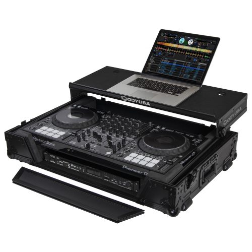 With Pioneer DJ's release of the DDJ-1000 Rekordbox and DDJ-1000SRT Serato DJ Pro controllers comes the new Odyssey Black Label™ FZGSDDJ1000W1BL Flight Zone® case. The removable V-cut™ front panel allows access to the controller's front knob controls and input jack ports. The patented Glide Style™ platform is perfect for positioning your laptop, tablet, effect processors, and other gear right where you want it over the DDJ-1000 controller. A cable management port, essential for a clean setup, is positioned below the rear of the player. Also Underneath the controller compartment is another one of Odyssey's signature digital controller case designs; a 1U 19" rack mount space perfect for rack mount gear such a wireless mic system, power strip, drive rack, or storage drawer. The mounting hardware included allows for front or rear rack mounting and can be removed all together if needed.