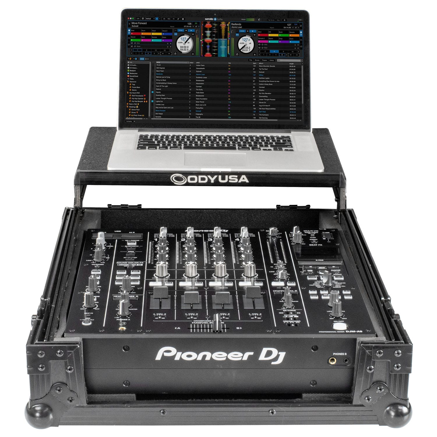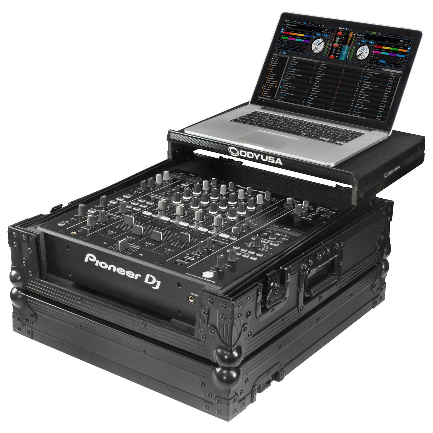Disclaimer: Odyssey Innovative Designs strives to ensure the accuracy of the information contained herein. However, due to the constant changes in raw material availability and usage, improvements in design, typographical errors, and other factors that may be beyond our control, We reserve the right to make changes in designs, styles, features, colors, dimensions, and other specifications without prior notice. Gear (for examples, laptops, DJ controllers, turntables, mixers, microphones, headphones, needles, cartridges, mats, and others) shown in product images are not included. Certain areas of the product images may not be shown in scale due to the nature of the photography. Copyrighted logos and trademarks are those of the respective company: Akai, Alesis, Allen & Heath, American Audio, Apple, Avertec, B-52, BBE, Behringer, Boss, Cascio, Chauvet, Coemar, Cortex, Crown, Dell, Denon, Digidesign, Drawmer, Elation, Fender, Gemini, Gemsound, Hercules, Korg, M-Audio, Mackie, Marshall, Martin, Mesa, Multi-Cart, Numark, Ortofon, Pearl River, Peavey, Pioneer, Rane, Robe, Roland, Serato, Shure, Sony, Soundcraft, Tascam, Technics, Traktor Scratch, Vestax, Vox, Yamaha, etc. Equipment pictured not included.