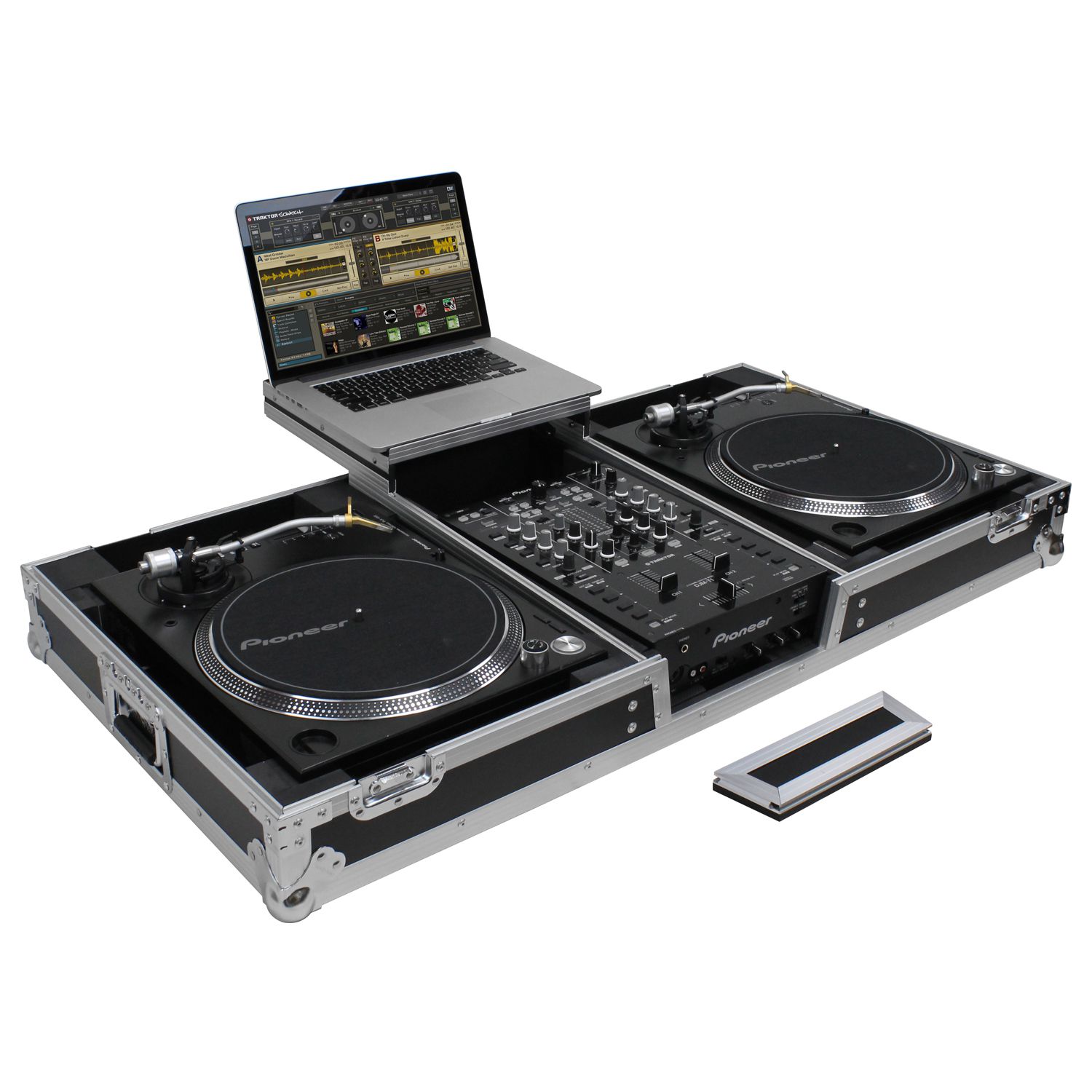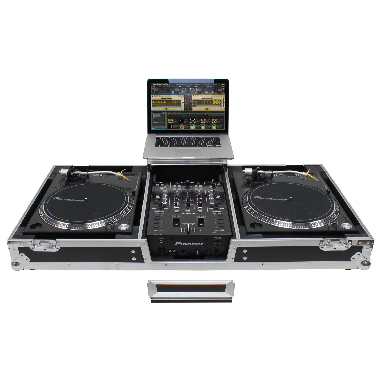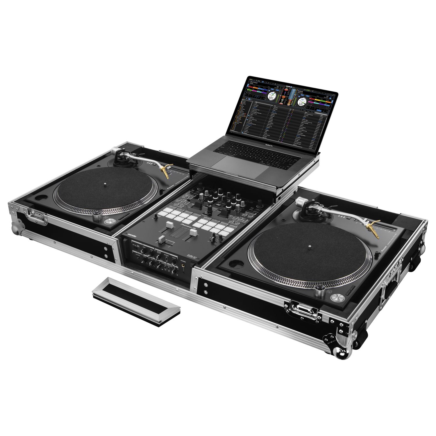 Low Profile 10″ Format DJ Mixer and Two Battle Position Turntables Flight Coffin Case with Wheels and Glide Platform