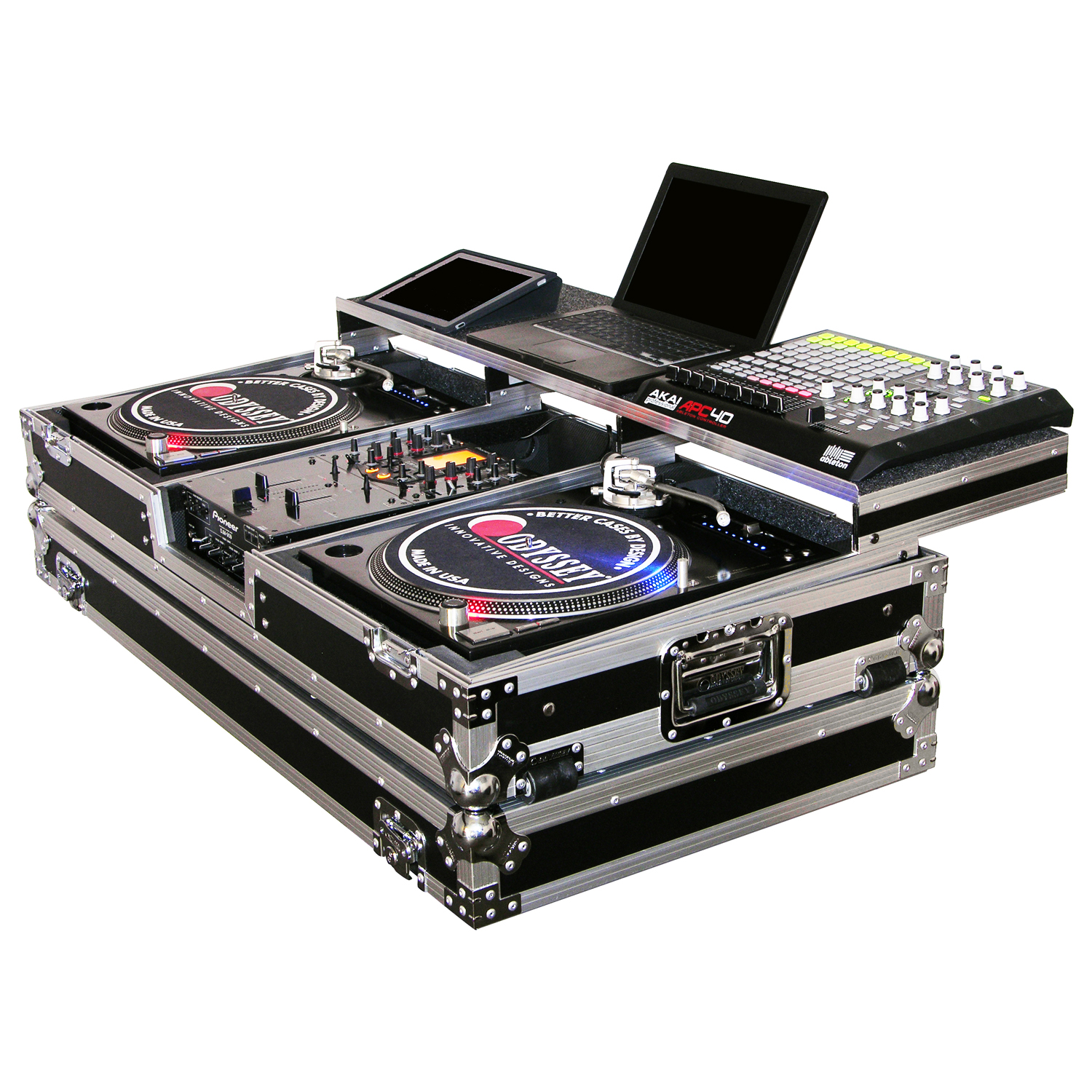 As the evolution of the DJ continues, so does the designs of Odyssey DJ coffins. Introducing the REMIXER™ GLIDE STYLE™ Series DJ coffins featuring a full width glide platform to place all your DJ remix gear. With digital vinyl software such as Serato and Traktor Scratch, more DJs have gone through the transition from beat mixer turntablist to full on remixer producer. Remixing tools to the DJ, such as keyboards and controllers to laptops and iPADs are now so easily availability and affordable, and Odyssey is there in the middle of it all providing these DJs the most functional DJ coffins yet with the REMIXER™ GLIDE STYLE™ Series.