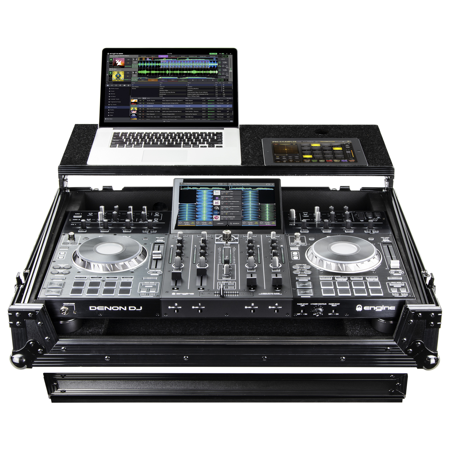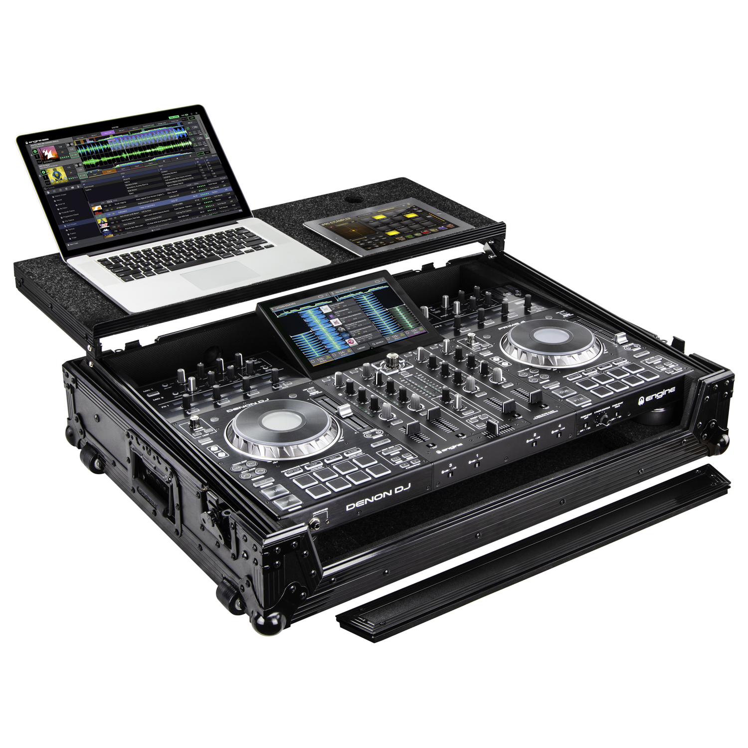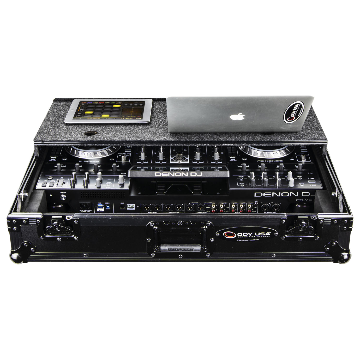 Odyssey presents the Flight Zone® BLACK LABEL™ FZGSPRIME4BL case featuring our patented Glide Style™ gear platform, great for positioning laptops, tablets, effect processors, and other performance essentials where you want over the controller. Specifically made for the Denon Prime 4 DJ controller and features a stylish V-Cut™ removable front V-cut™ panel allows for easy access to the front controls and headphone/mic jacks. A spacious ventilation pit under the controller is ideal for storing cables and other accessories.