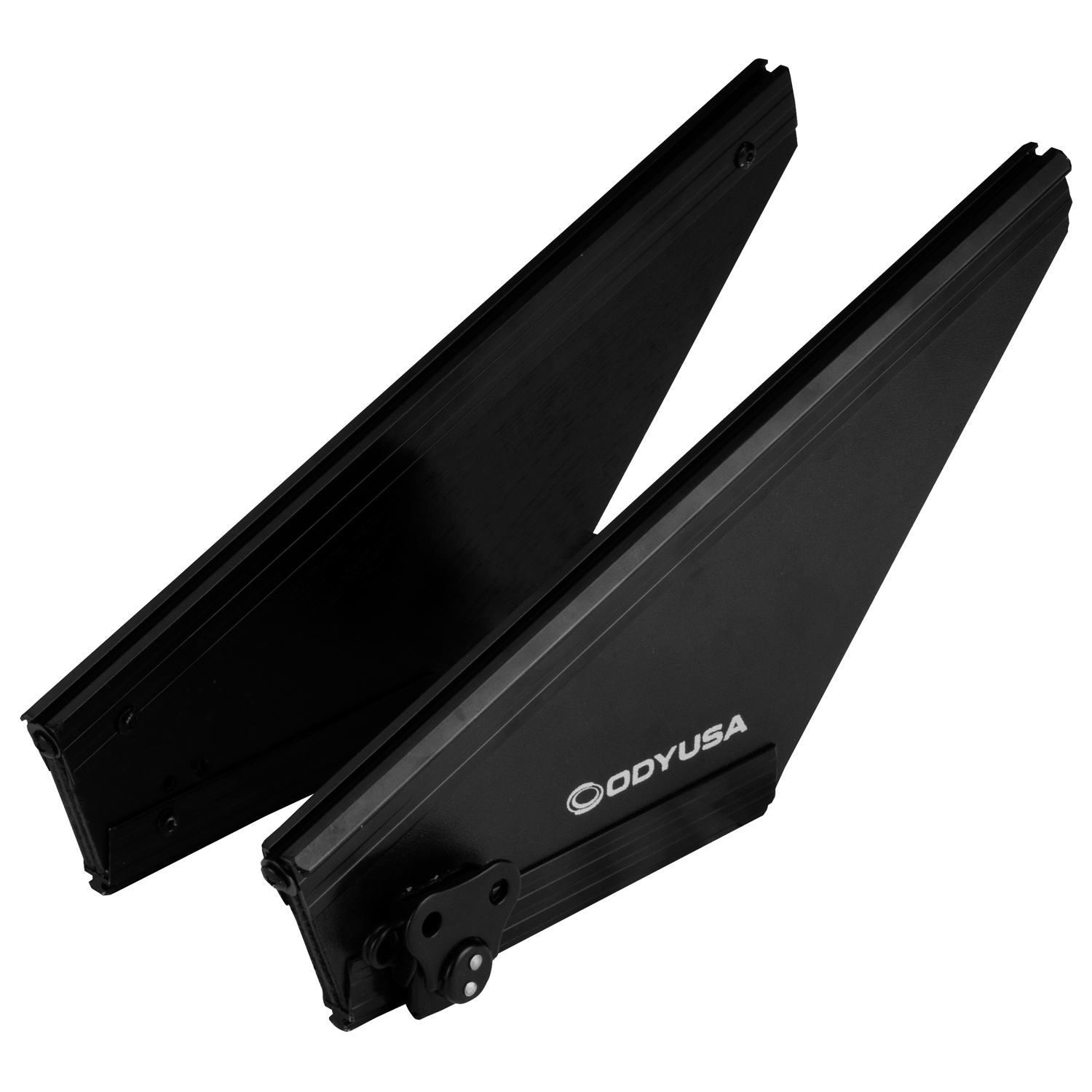 Odyssey's GSABL Black Label™ Glide Style™ Platform angled panel attachment supports come included with our exciting new 'GSA' Producer Glide Style™ Series design cases that bring a new 'angle" to our patented Glide Style™ platform. Now you can choose to configure the gliding platform either in the standard setup with a flat top surface, or add the additional GSA side support panels to position the platform higher and at an angle. Either way, it's perfect for placing your laptop, tablet, effect processor, modular synthesizer, and other gear right where you want over the controller. Enhance your overall performance by using the angled configuration for superior visualization and reach of your remix production gear's knobs, trigger pads, faders, screens, switches, buttons, keys, etc. Compatible with Odyssey Glide Platforms with tension latch rail systems. Also available in our standard Flight Zone® Series with silver and chrome hardware |GSA|.
