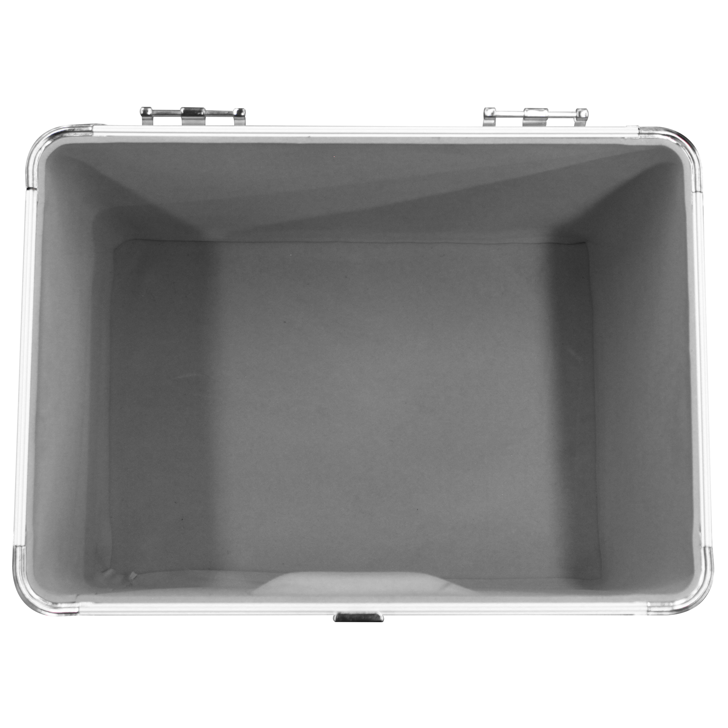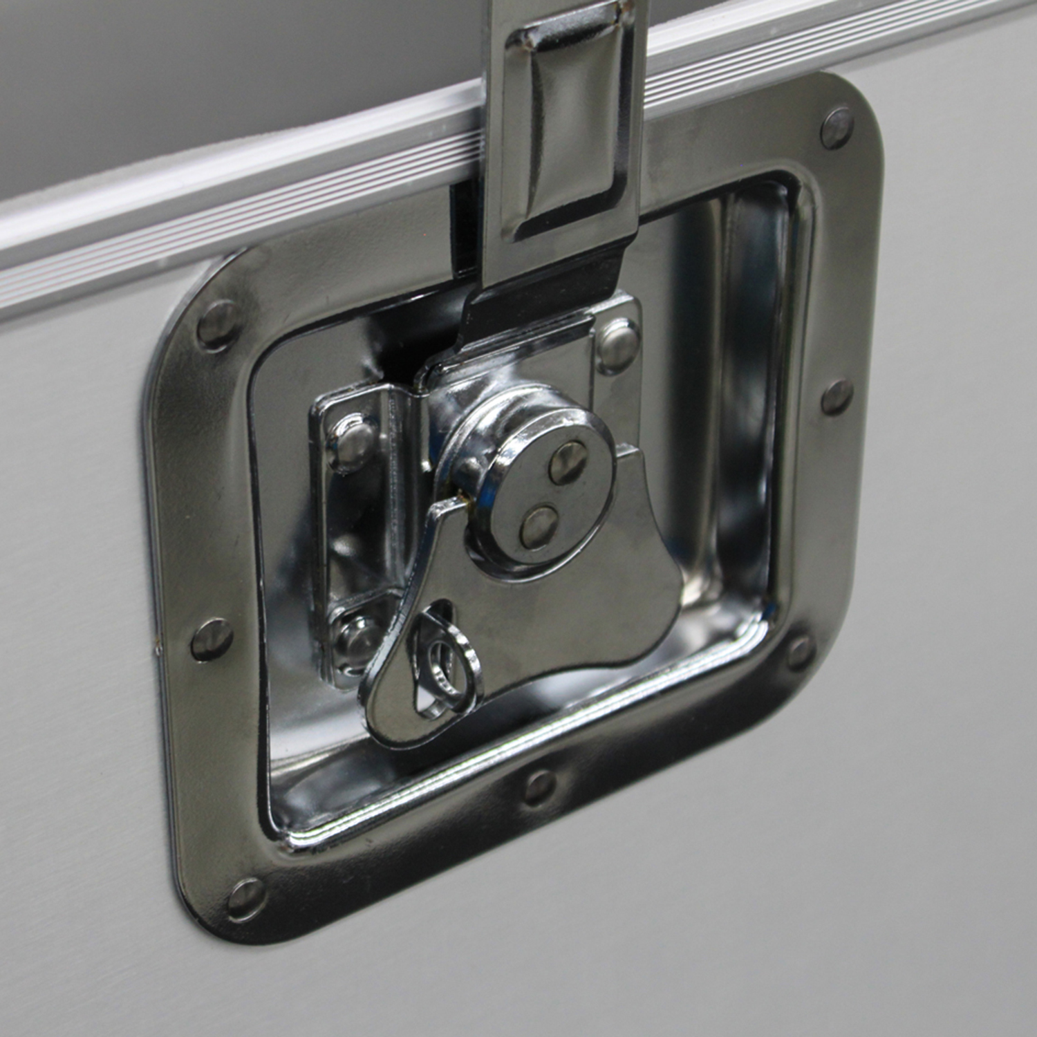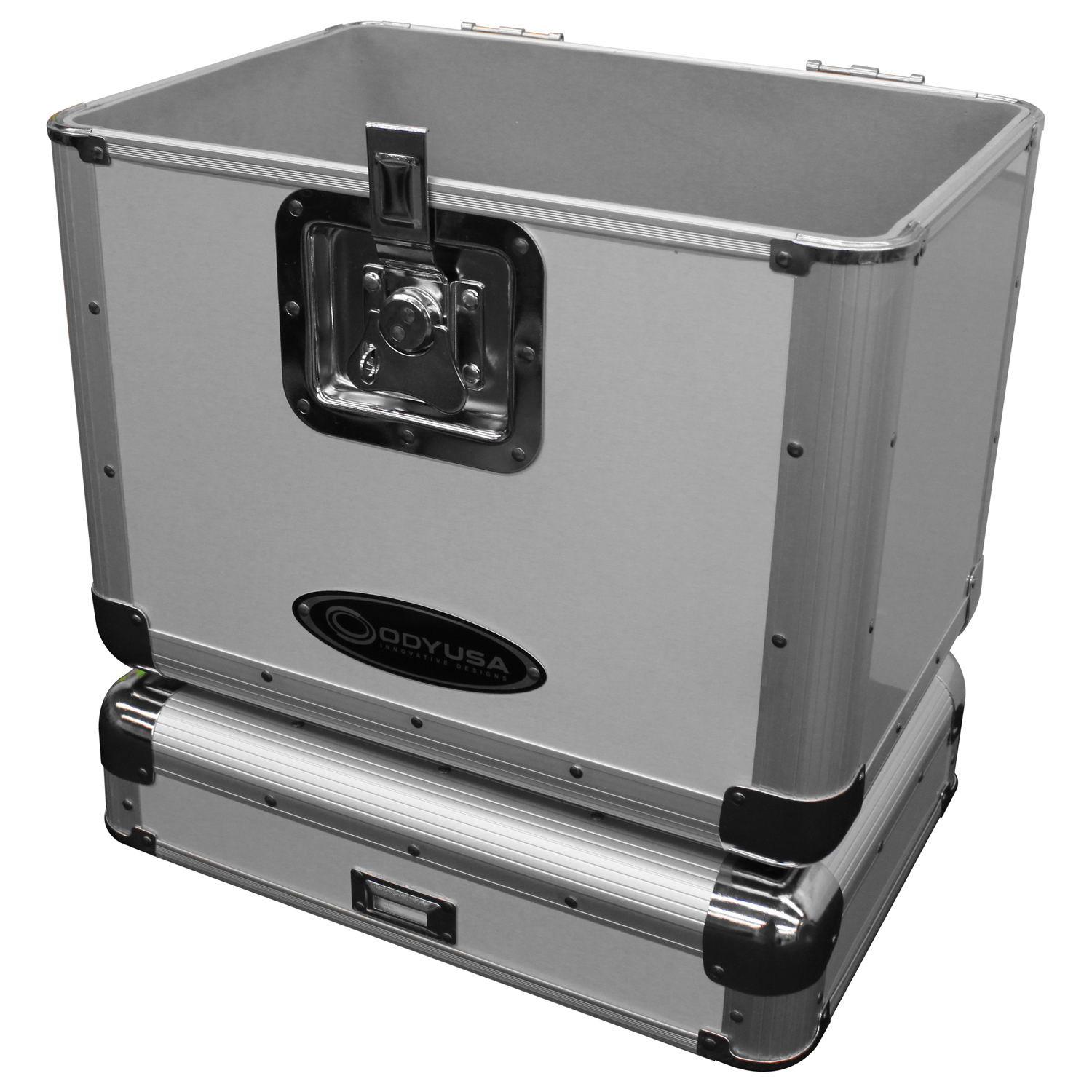 The Krom™ series KLP2 12" and LP vinyl/utility case holds approximately 70 records in it's fully foam-lined interior compartment. The sleek exterior features a fully removable lid and a lockable butterfly latch, and is designed with four bottom rubber feet and a recessed heavy-duty spring-loaded handle which are essential for secure stacking of the bottom of the case on top of the lid, or one KLP2 case on top of another.
