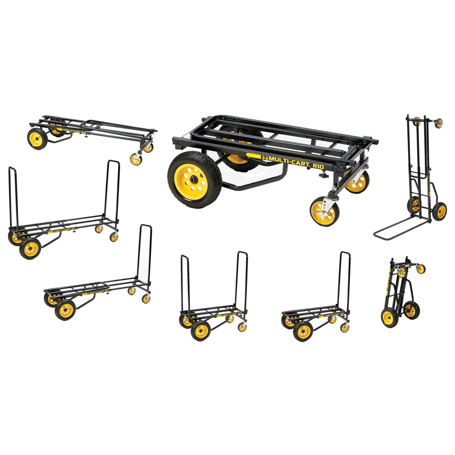 The RocknRoller™ Multi-Cart™ R10RT is outfitted with rugged, foam-filled no-flat 10" rear wheels and 5" front swivel casters that will allow you to move massive amounts of gear quickly and easily. The R-Trac™ tires ride smoothly with excellent traction, similar to pneumatic tires, but without the hassle of upkeep or repair. The patented 8-in-1 cart can transform easily to adjust to various load sizes, allowing you to move large amounts of gear in no time at all. Extending from 34" to 52" in length, the R10RT has a weight capacity of 500lbs, but also folds small for storage or transport in a vehicle. The textured powder coated steel is durable and also reduces slippage during transport.