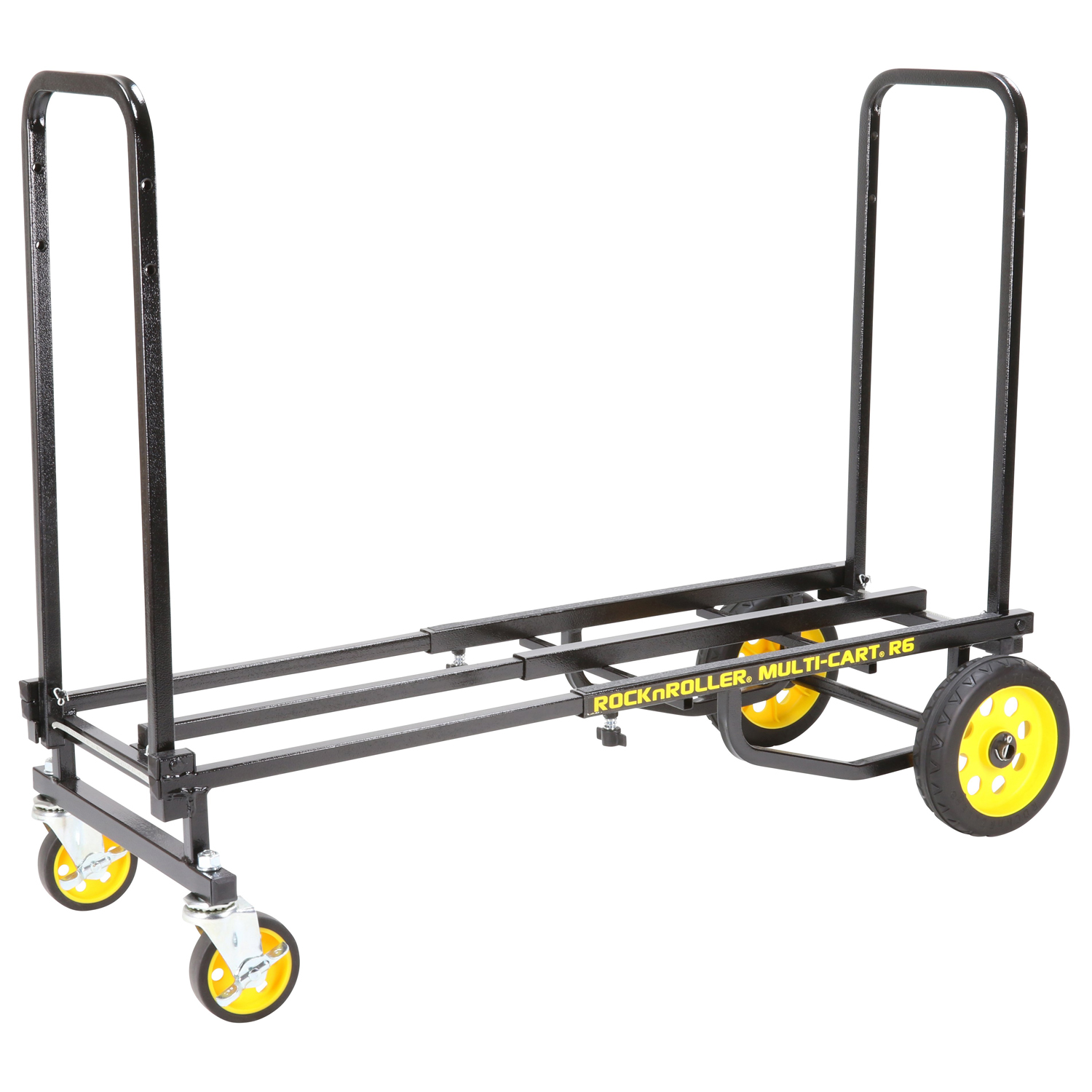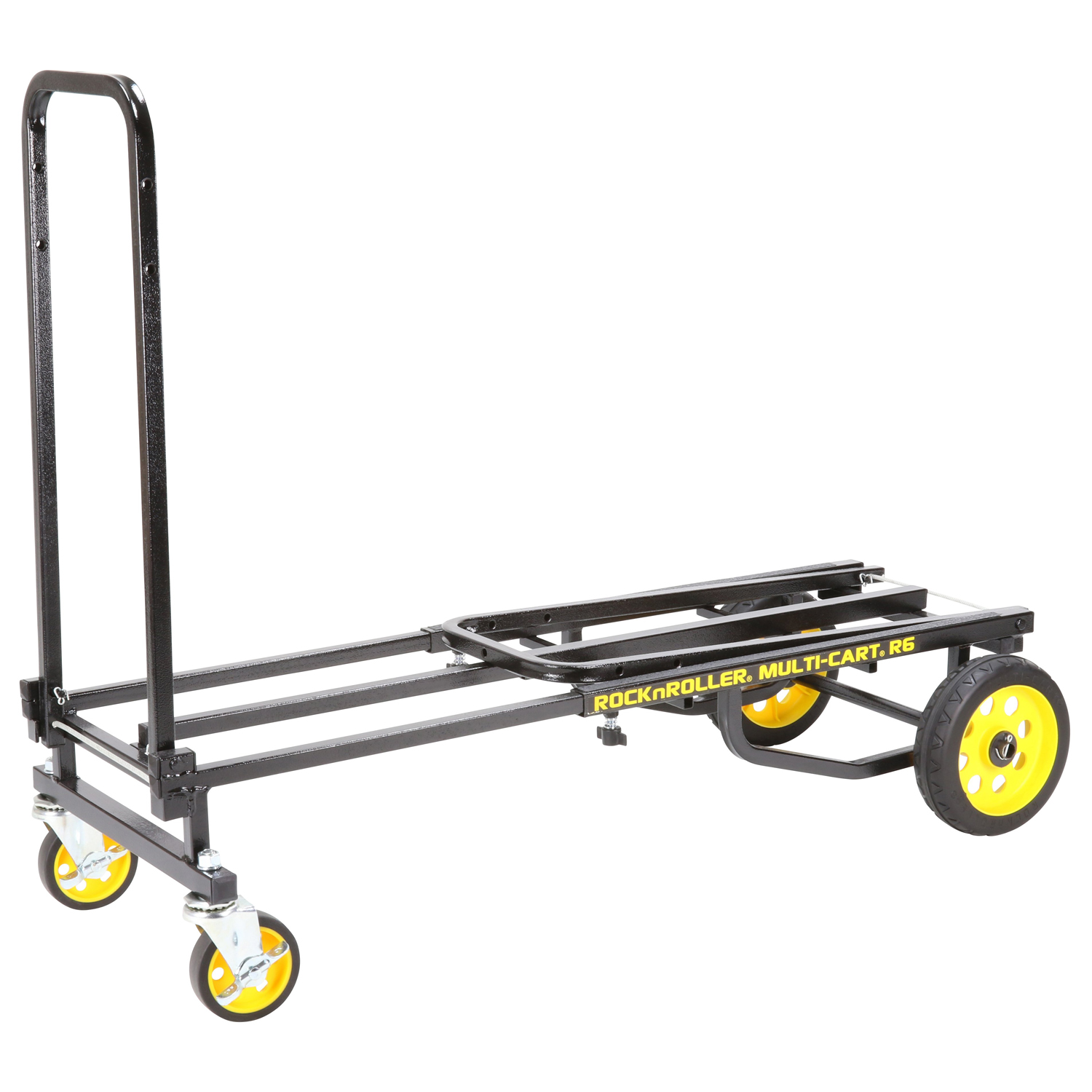 The RocknRoller™ Multi-Cart™ R6RT is outfitted with rugged, foam-filled no-flat 8" rear wheels and 4" front swivel casters that will allow you to move massive amounts of gear quickly and easily. The R-Trac™ tires ride smoothly with excellent traction, similar to pneumatic tires, but without the hassle of upkeep or repair. The patented 8-in-1 cart can transform easily to adjust to various load sizes, allowing you to move large amounts of gear in no time at all. Extending from 28" to 42.5" in length, the R6RT has a weight capacity of 500lbs, but also folds small for storage or transport in a vehicle. The textured powder coated steel is durable and also reduces slippage during transport.