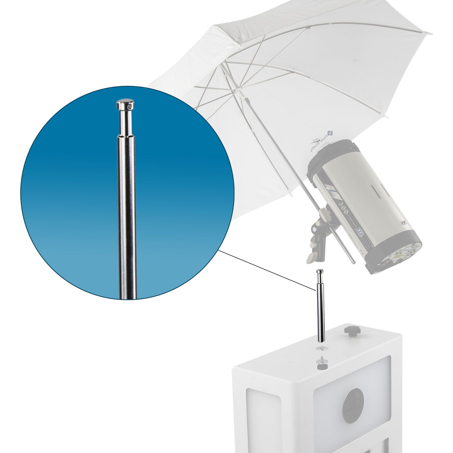 The PBBABYPING9 polish aluminum 9" long baby pin flash mount accessory for the Odyssey Majestic Photo Booth Kiosk/ Printer Combo Stand fits locking 5/8" diameter receptors.