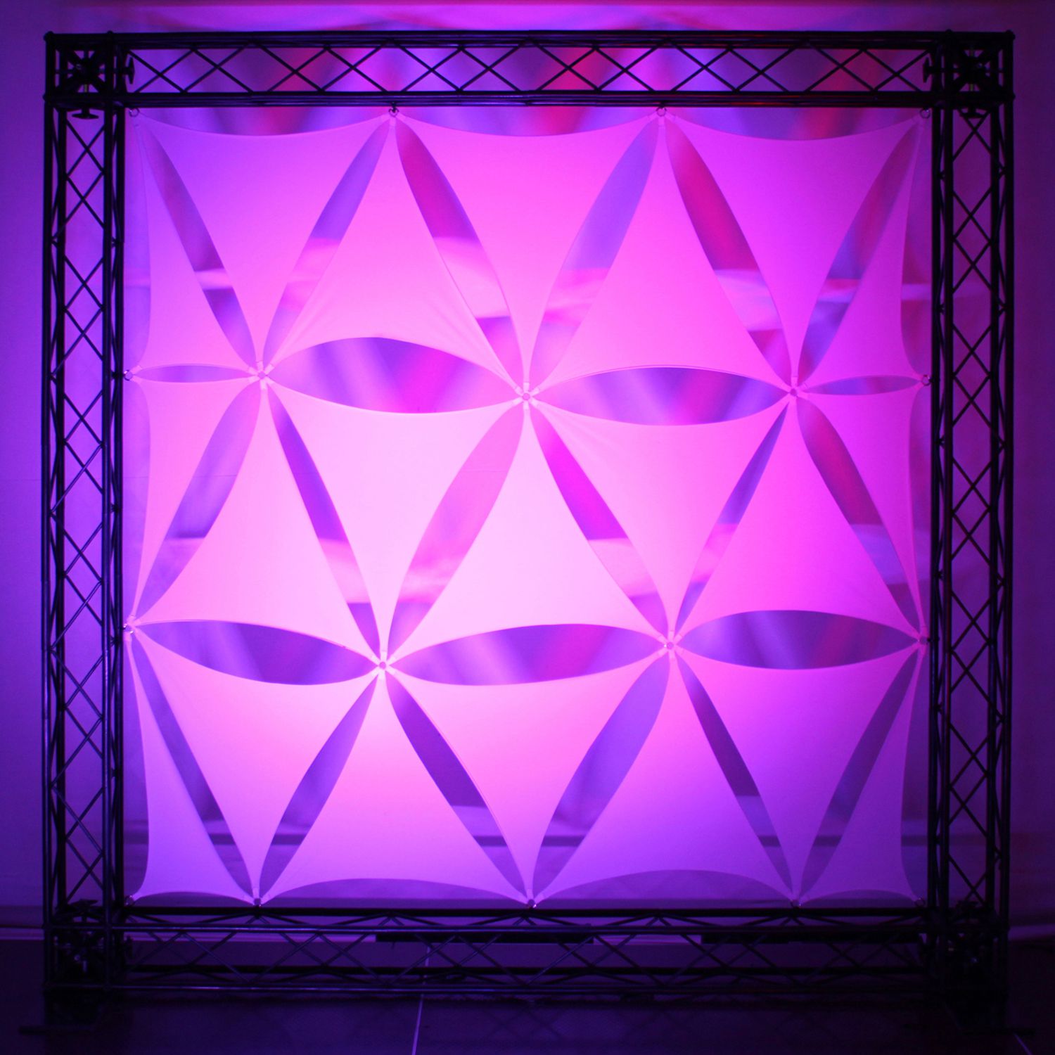 Introducing a new addition to Odyssey's extraordinary line of Scrim Werks™ products. Take your DJ services to the next level a step up above your competition with Odyssey's Decor Panels™. Create an attractive and innovative Decor Panel™ display for your DJ booth background. It's a brilliant way of differentiating yourself from the crowds of DJs out there and getting those high end gigs with high returns. Use them for decorative, lighting, and projection applications for banquets, photo booth and stage backdrops. With various available shapes and sizes your possibilities are endless. For a complete effect we recommend that panels are used in conjunction with LED lighting or gobo projection lighting. Decor Panels are available for purchase in bundled packages of complete wall pattern displays ideal for use with our optional Nexus Truss Decor Panel™ Frames.