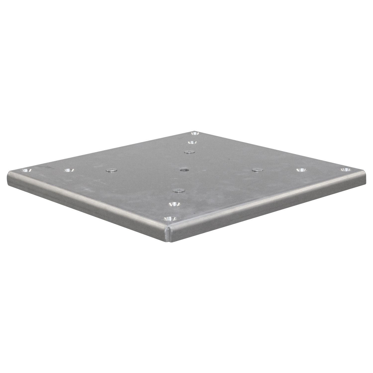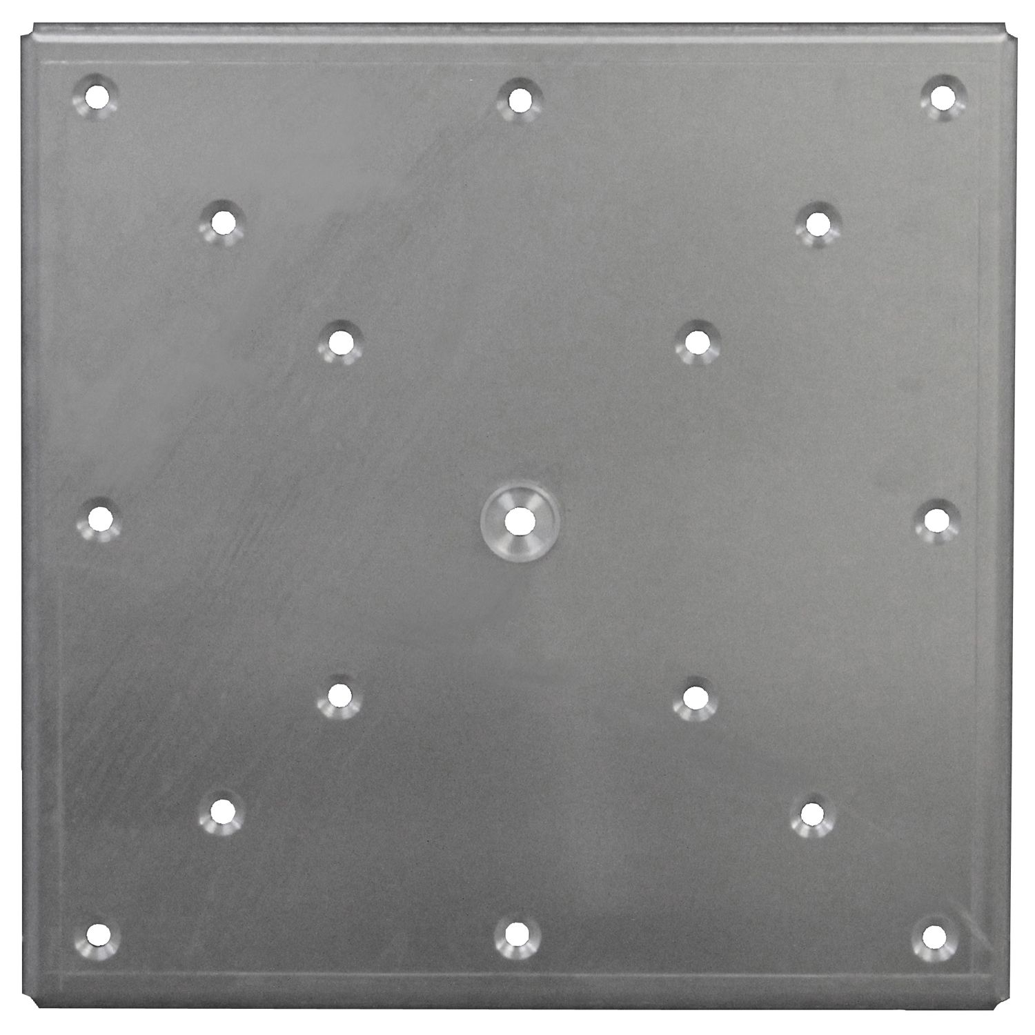 The SWLCBP17 aluminum plate comes standard in pairs with the 1-6 ft. Scrim Werks™ Light Column packages and 1 together with a 24"x24" plate in the 7-10 ft. packages. It features multiple bolt holes for diverse Column pole configurations, and a center bolt hole for securing lights, attaching to another light column plate, or attaching the SWLCSPKSTUD Light Column speaker stud adapter.