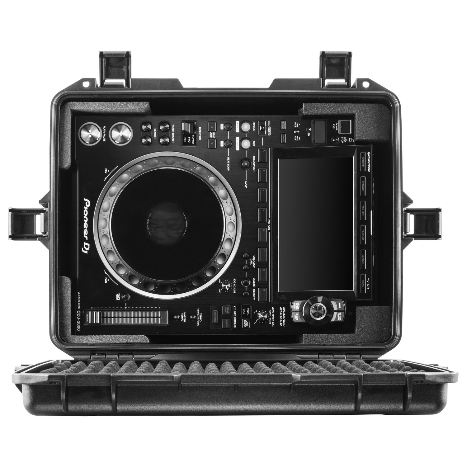 For the Pioneer CDJ-3000, Odyssey's CDJ3000 trolley case (VUCDJ3000HW) is watertight, dust-proof, and impact resistant.  The case is injection molded with a high strength polymer resin. The VUCDJ3000HW features a fully foamed interior as well as corner wheels and a pullout handle for transport convenience.  The lid has a soft convoluted egg foam-lined interior with a custom fit bottom interior specifically made for the Pioneer CDJ-3000 professional DJ multi player.