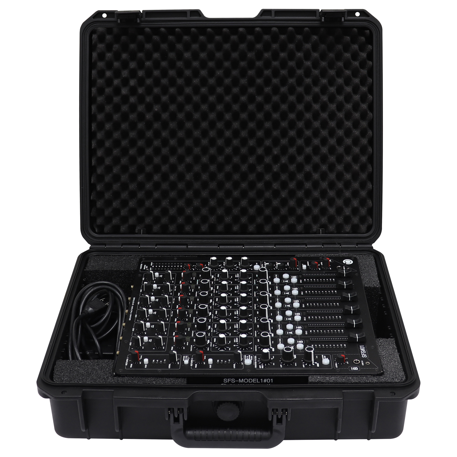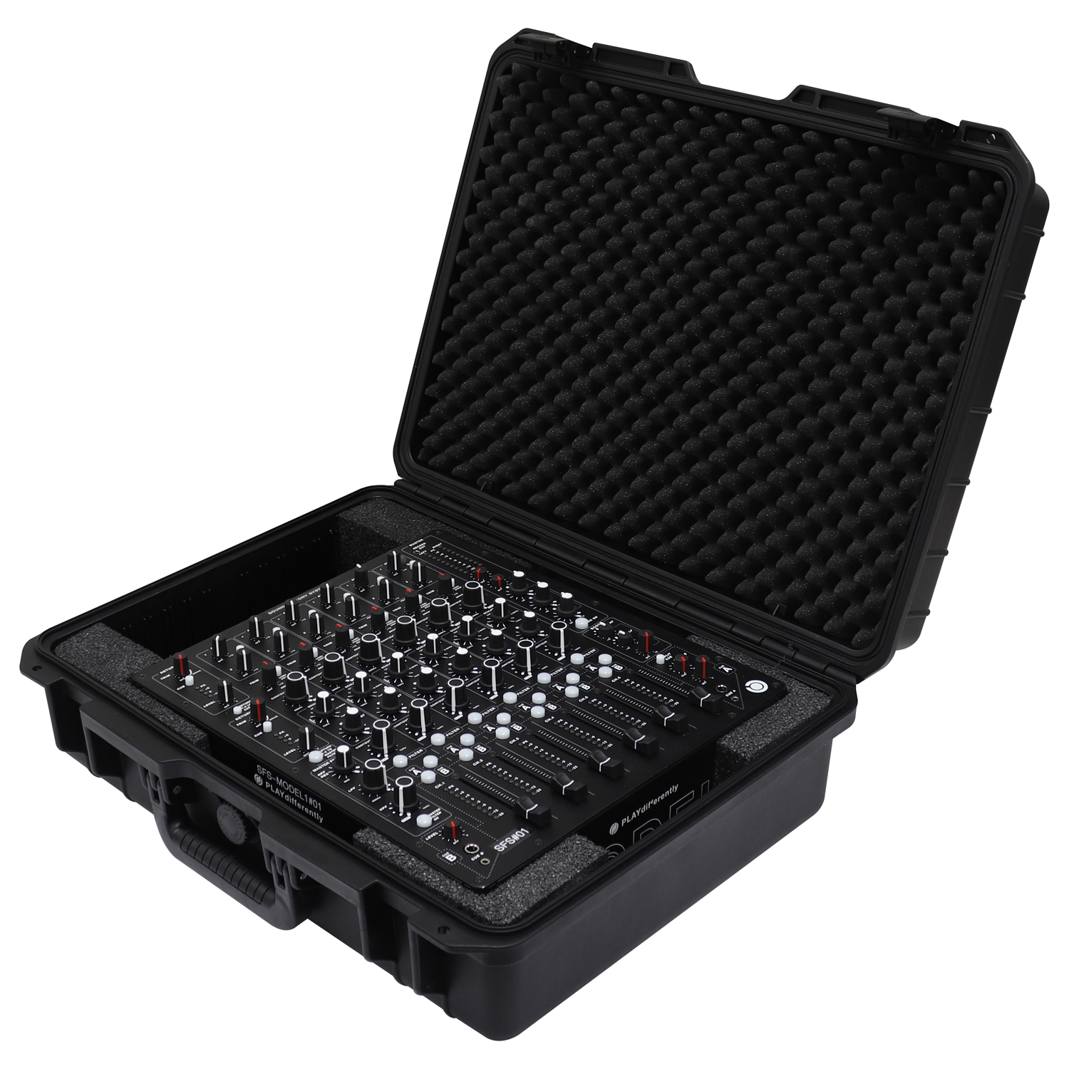 Our Vulcan series cases are watertight, dust-proof and impact resistant. Each are injection molded of a high strength polymer resin which provide you with the ultimate in protection for your gear. The VUMODEL1 features a custom fit interior specifically for the PLAYdifferently Model 1 DJ mixer. Features include a comfortable carrying handle, a pressure release valve, and two padlock holes.